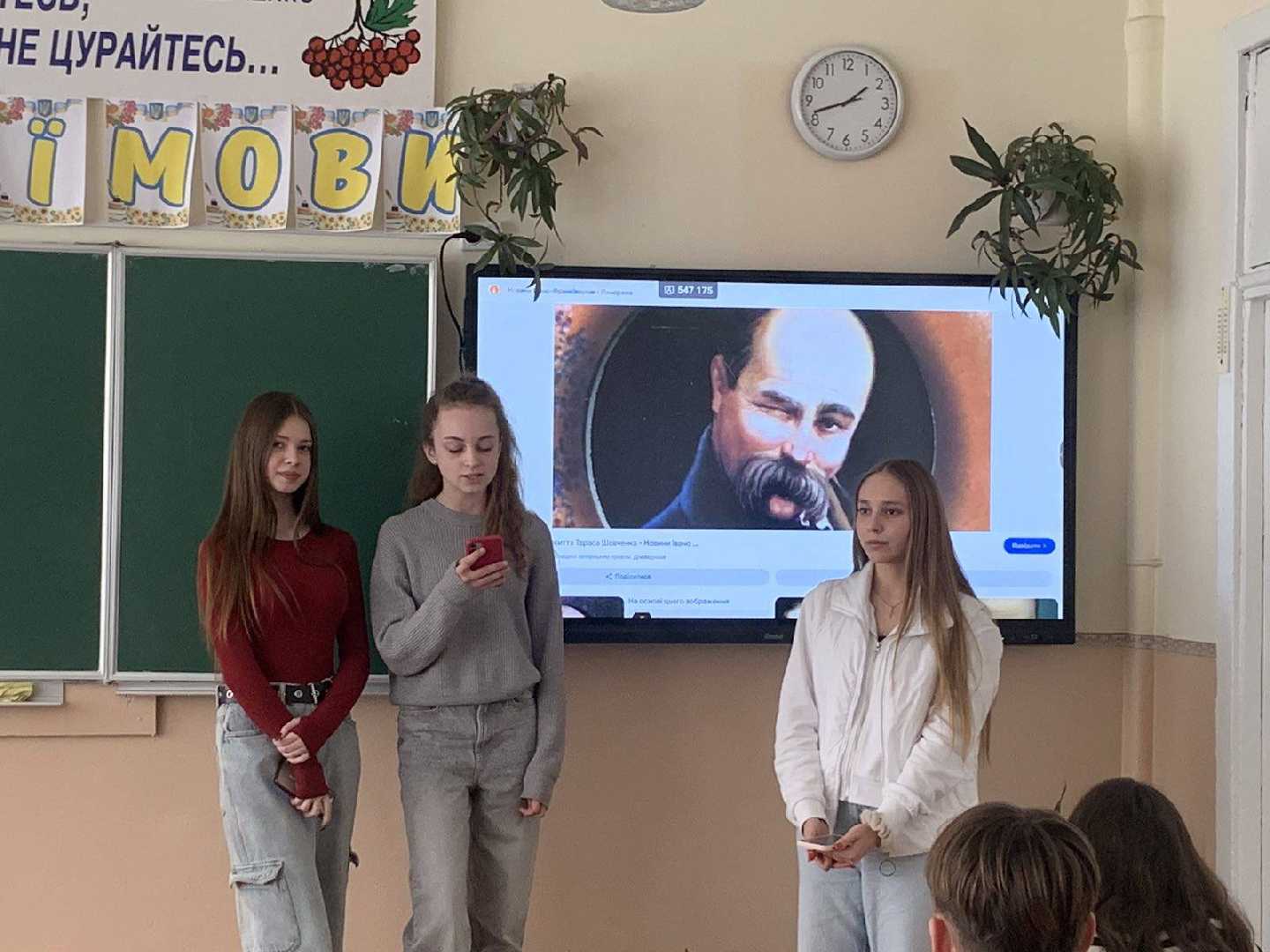 Сьогодні учні 5-Г класу (кл. керівник Зджанська Ю.А.) провели захід "Тарас Шевченко - вірний син України". Школярі співали пісе ...