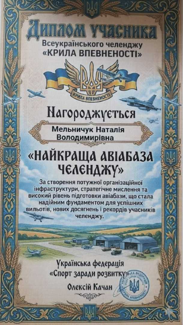 Вихованці старшої групи #1"Сонечко" під керівництвом активних та творчих педагогів- Олени Васюк (інструктор з фізкультури), Ірини Гузовської (вихователь) та Наталі Мельничук (вихователь) долучились до Всеукраїнського фізкультурно-оздоровчого челенджу " Крила впевненості." Це були сотні історій, тисячі рухів, командна підтримка і віра в перемогу. 30 днів надзвичайних активностей, де кожен учасник став частиною великої спільноти, в якій рух - це радість, розвиток і взаємодія. Під час челенджу педагоги мали можливість долучитись до онлайн - конференції "Взаємодія духовного та фізичного виховання в становленні гармонійно розвиненої особистості" та підвищити свій професійний рівень знань. Щиро дякуємо організаторам Національного проєкту "Цікава фізкультура" 2.0- перезавантаження" за організацію та навчання!