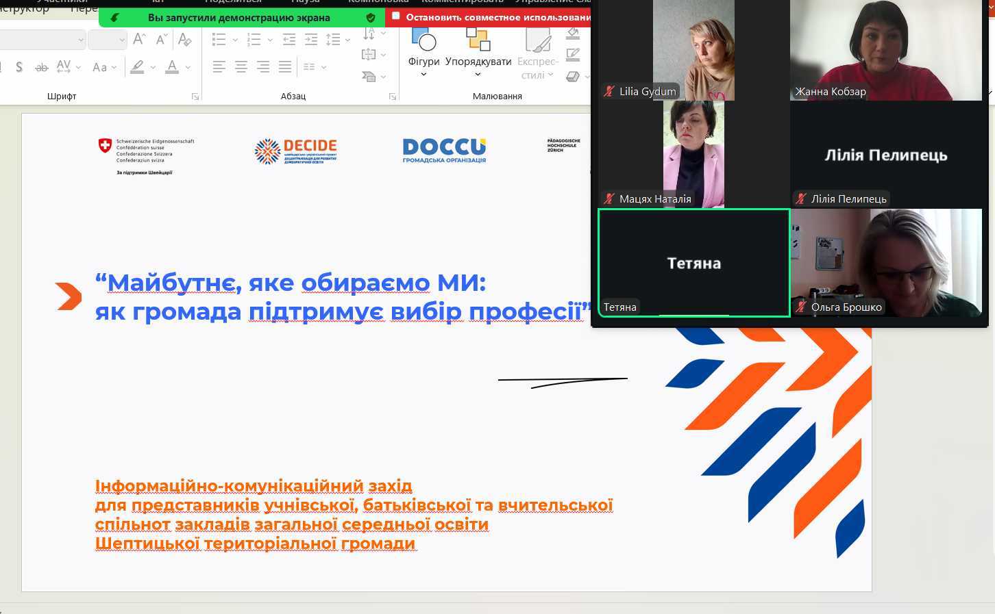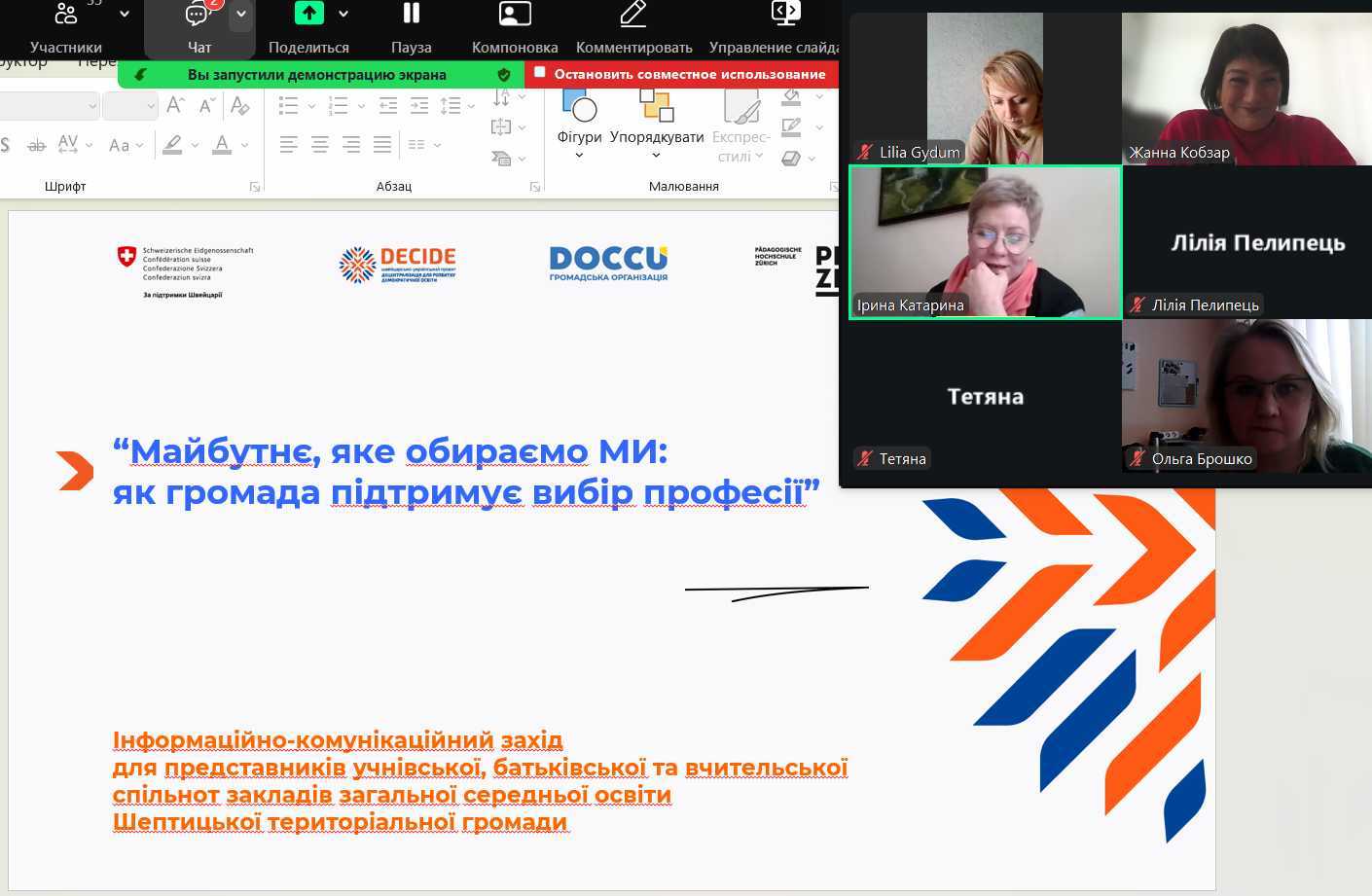 Модератором зустрічі виступила кар’єрний координатор Шептицької громади Жанна Кобзар, яка наголосила: профорієнтація стає успішною лише тоді, коли школа, родина і громада діють спільно - це не лише особистий вибір дитини.