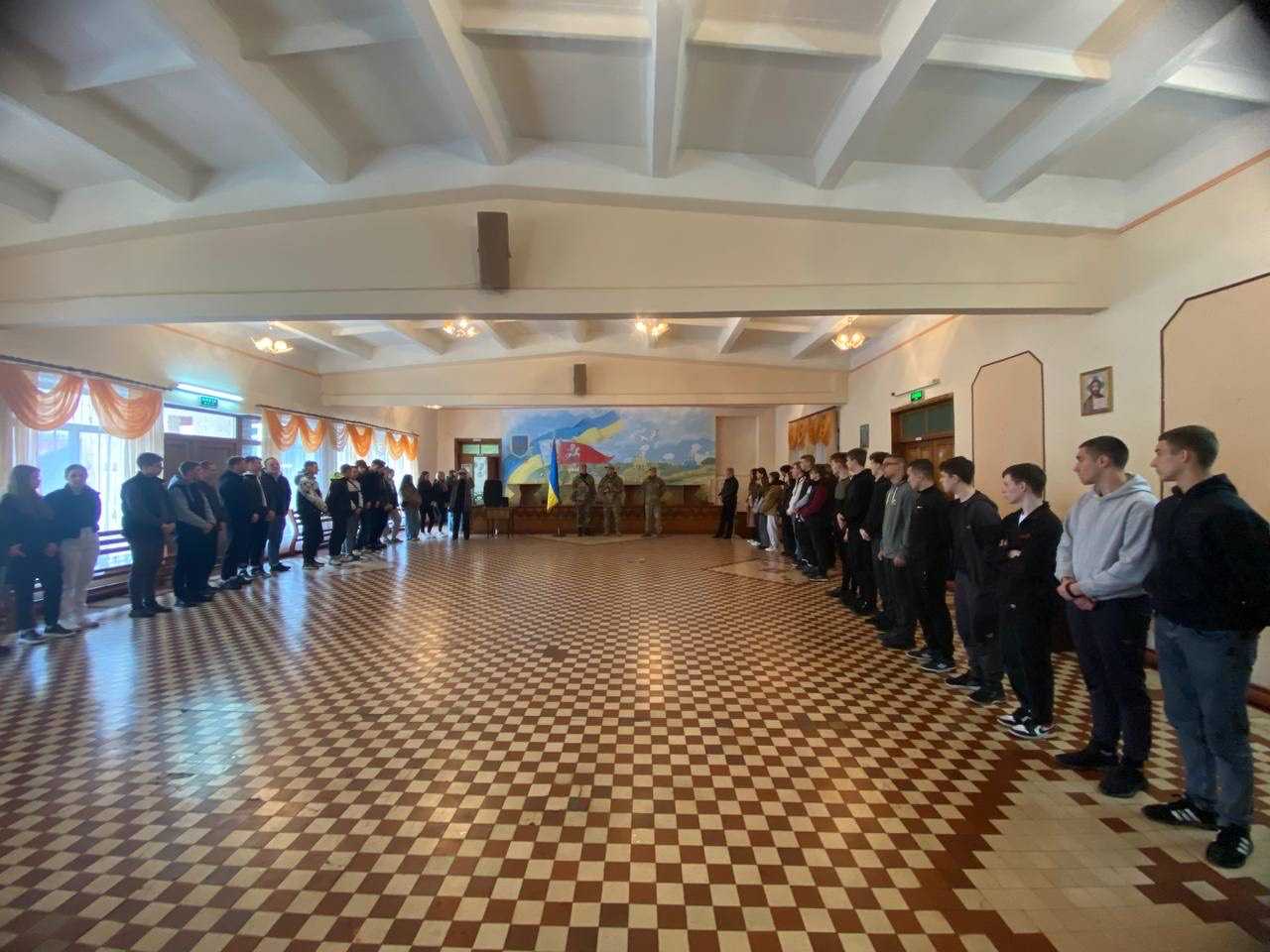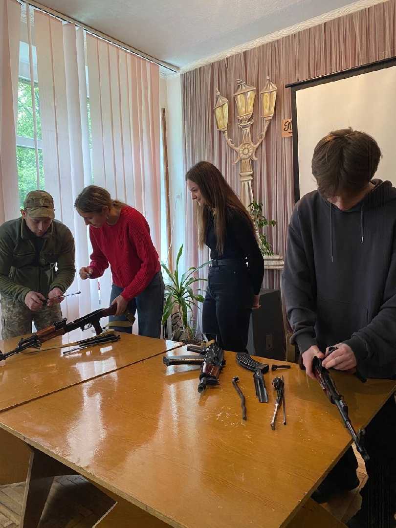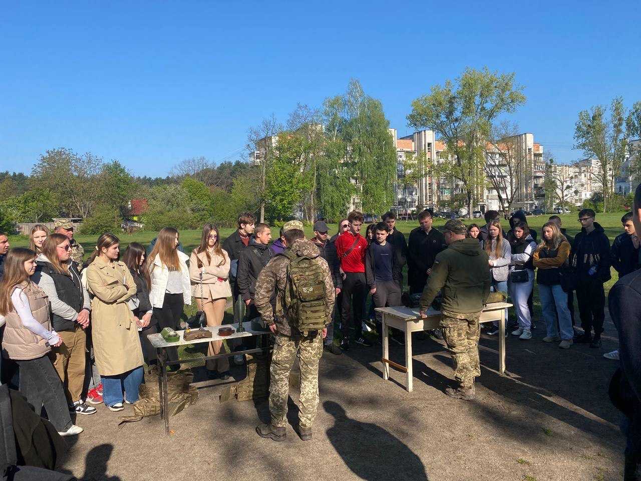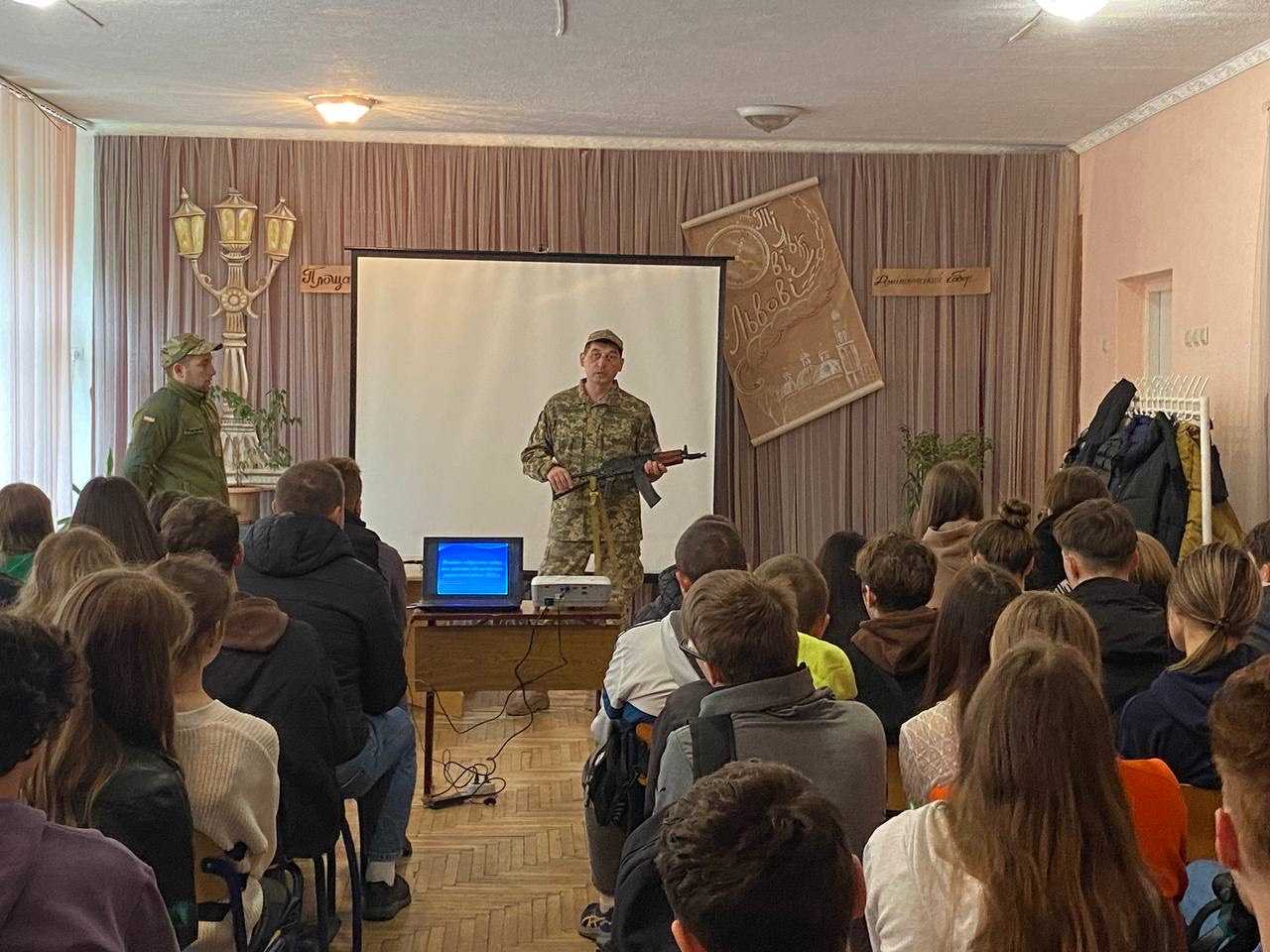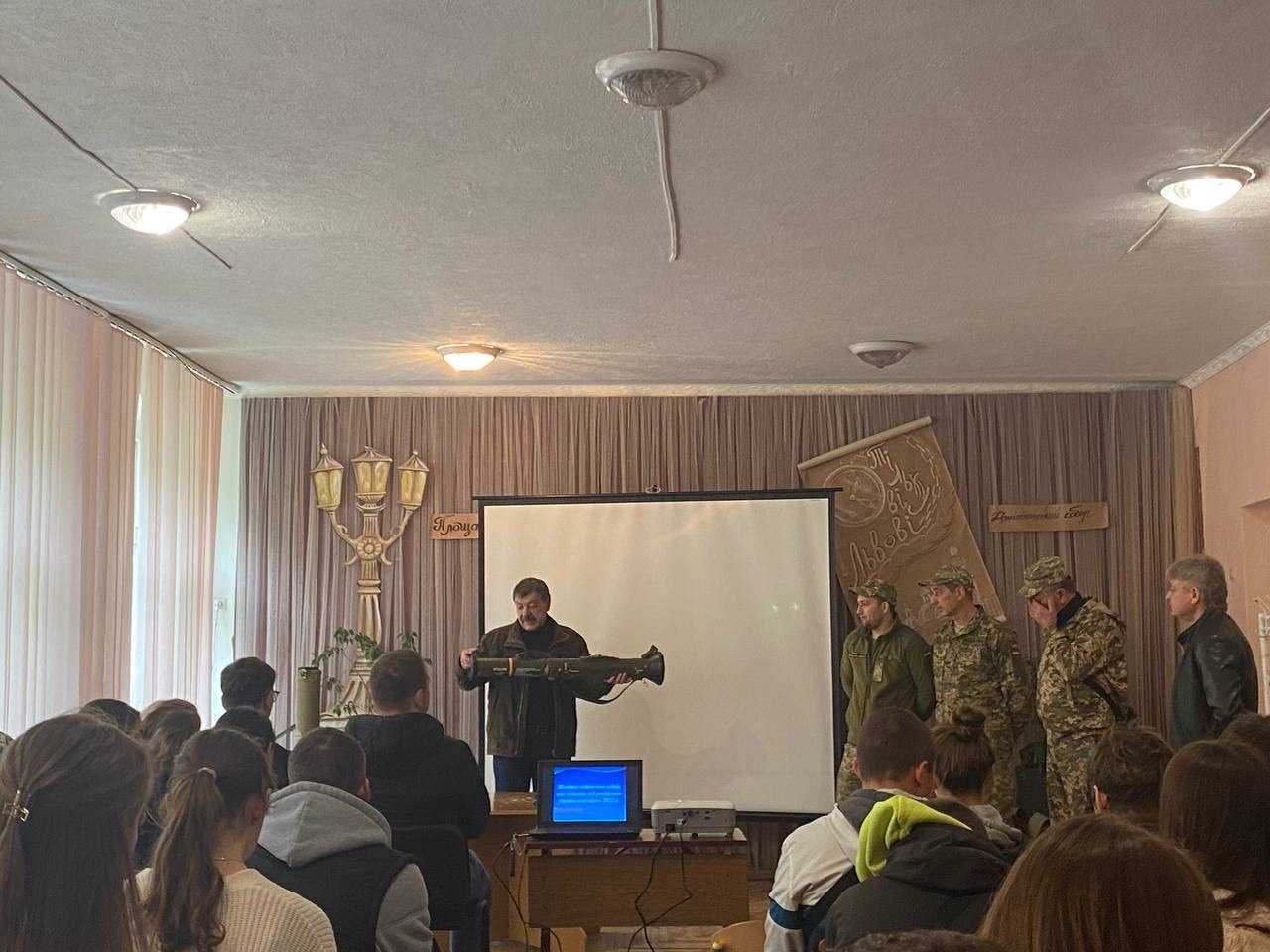 На навчально-польові збори прибули військовослужбовці В/Ч Т-0410, які провели практичні заняття із стройової і тактичної підготовки, ознайомили учнів із зразками стрілецької зброї і мінно-вибуховими пристроями.