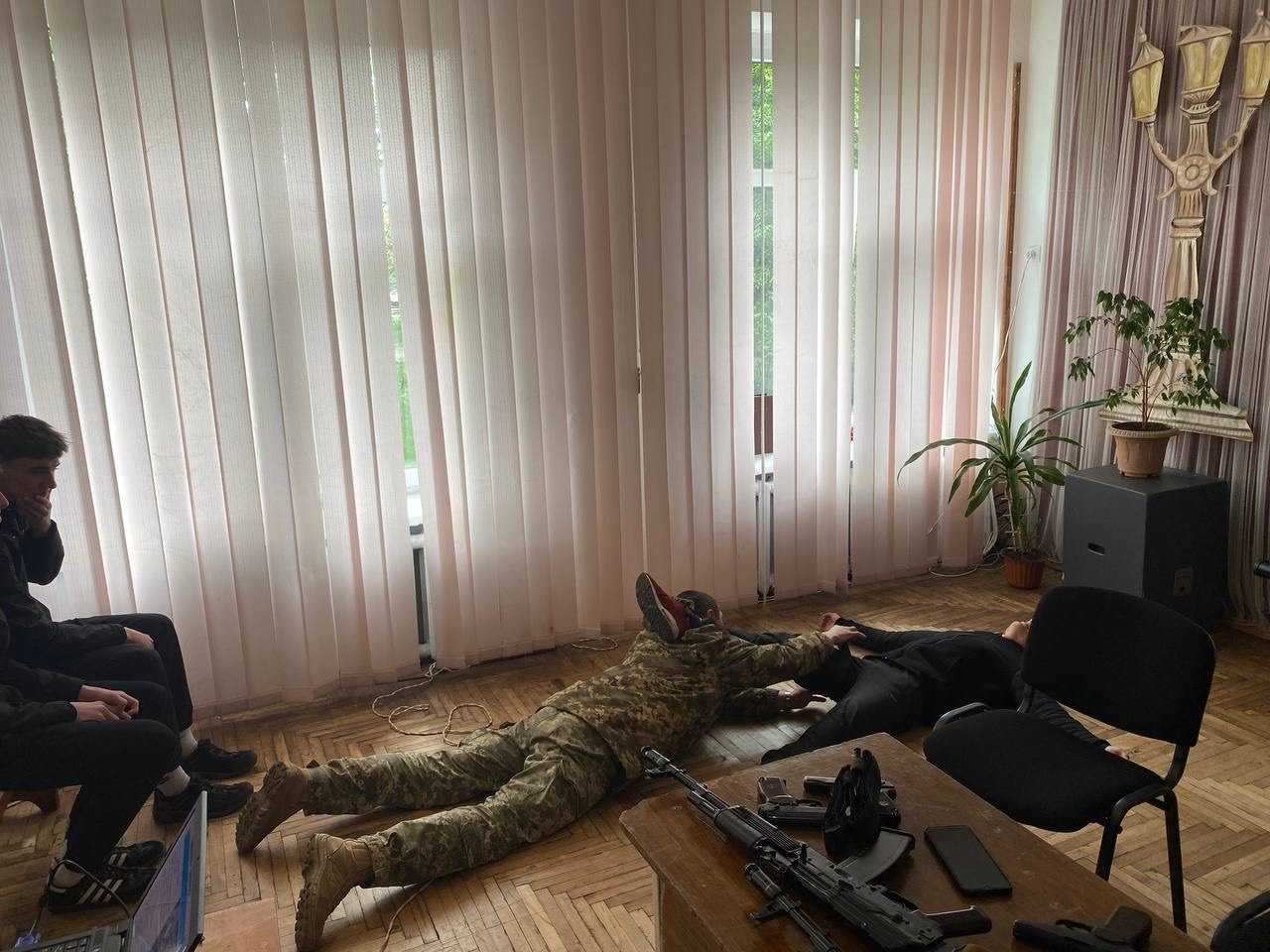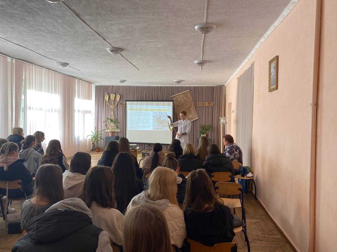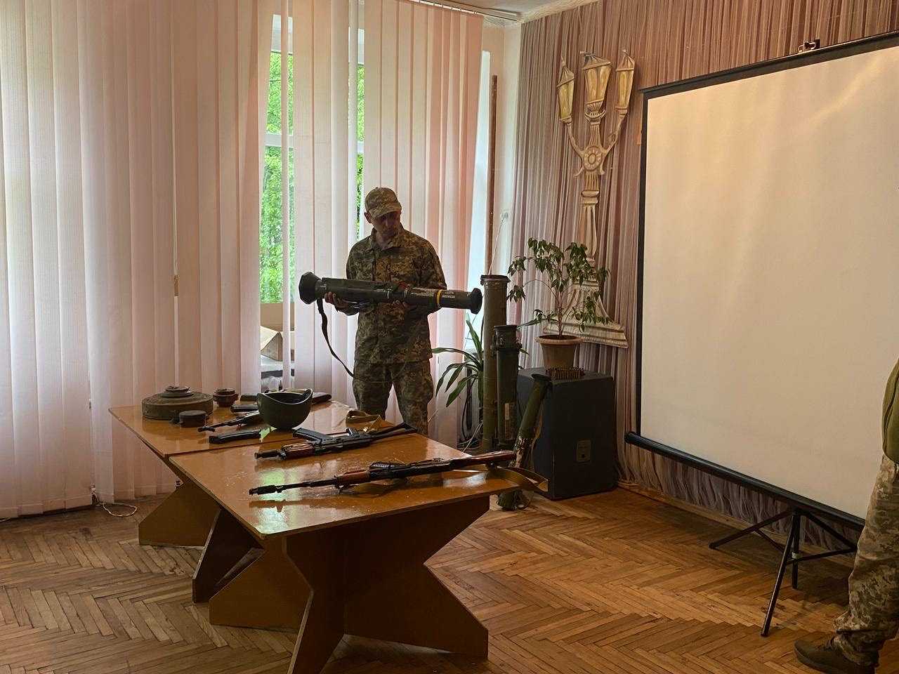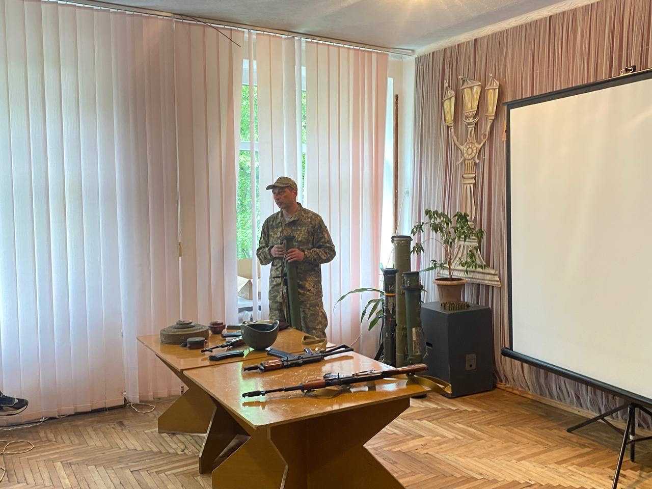 На навчально-польові збори прибули військовослужбовці В/Ч Т-0410, які провели практичні заняття із стройової і тактичної підготовки, ознайомили учнів із зразками стрілецької зброї і мінно-вибуховими пристроями.
