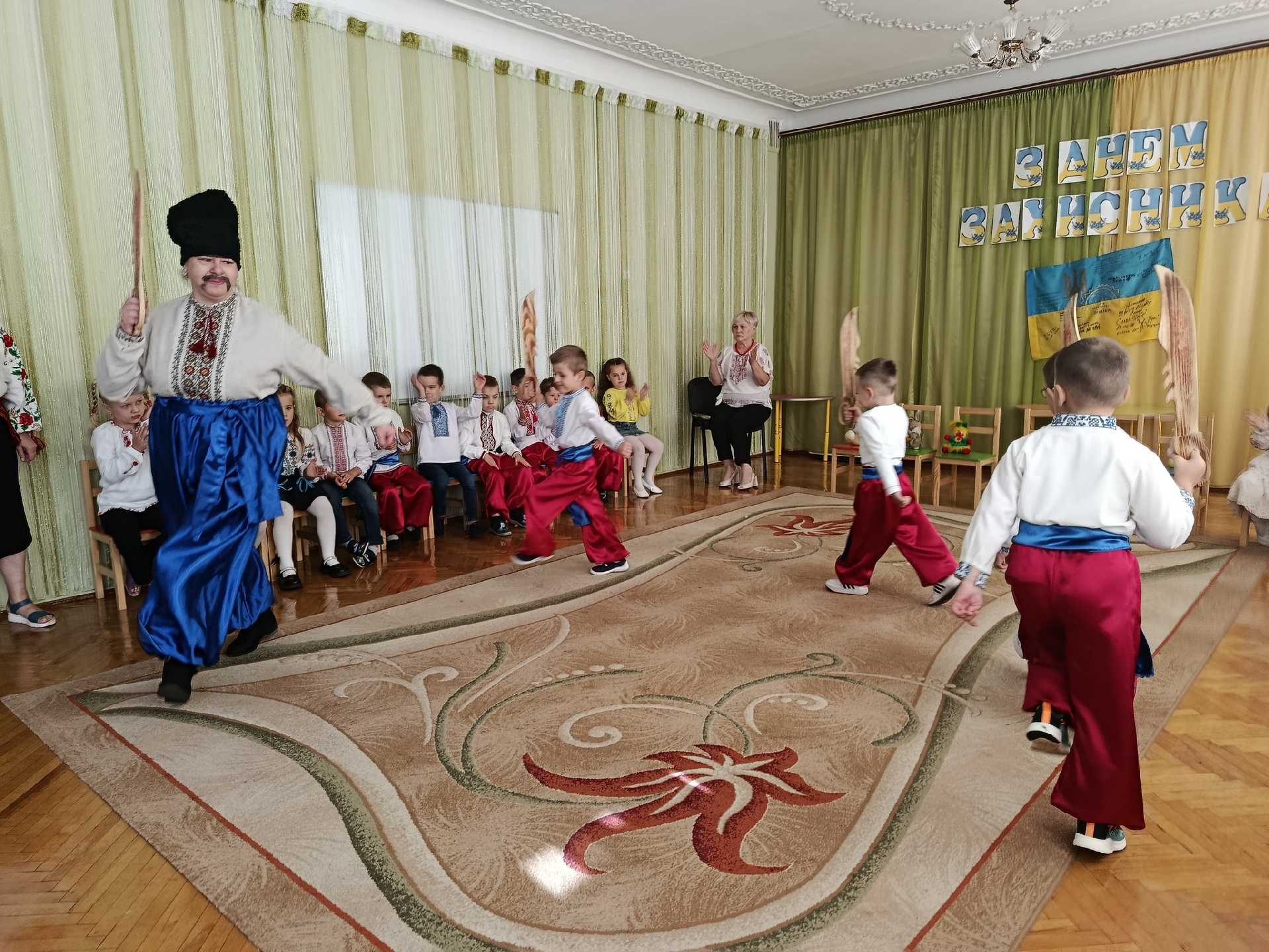 Хлопчики продемонстрували справжній козачий дух та енергію, виконавши чудовий танок «Козачата». Задоволені та сміливі, вони показали свою згуртованість, спритність та гордість за свою країну. Танок був неймовірно яскравим, а емоції від виступу дітей — безцінними! Після цього козачата долучилися до веселих змагань на спритність, де перетягування канату стало справжнім випробуванням для них.