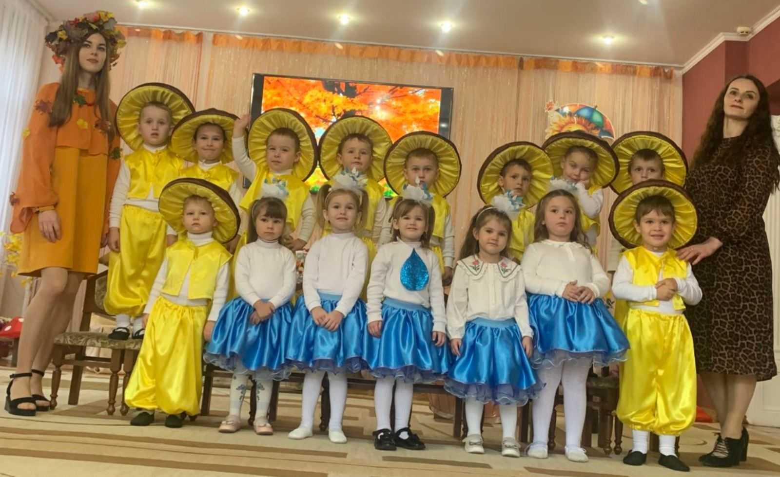 Веселі краплинки, спритні білочки, блискучі каштанчики, маленькі мишки та кумедні грибочки допомагали Осені місити тісто, а сонячні промінчики допомогли йому зарум'янитись і стати пахучим короваєм.