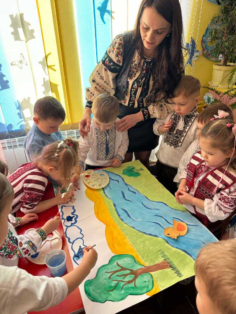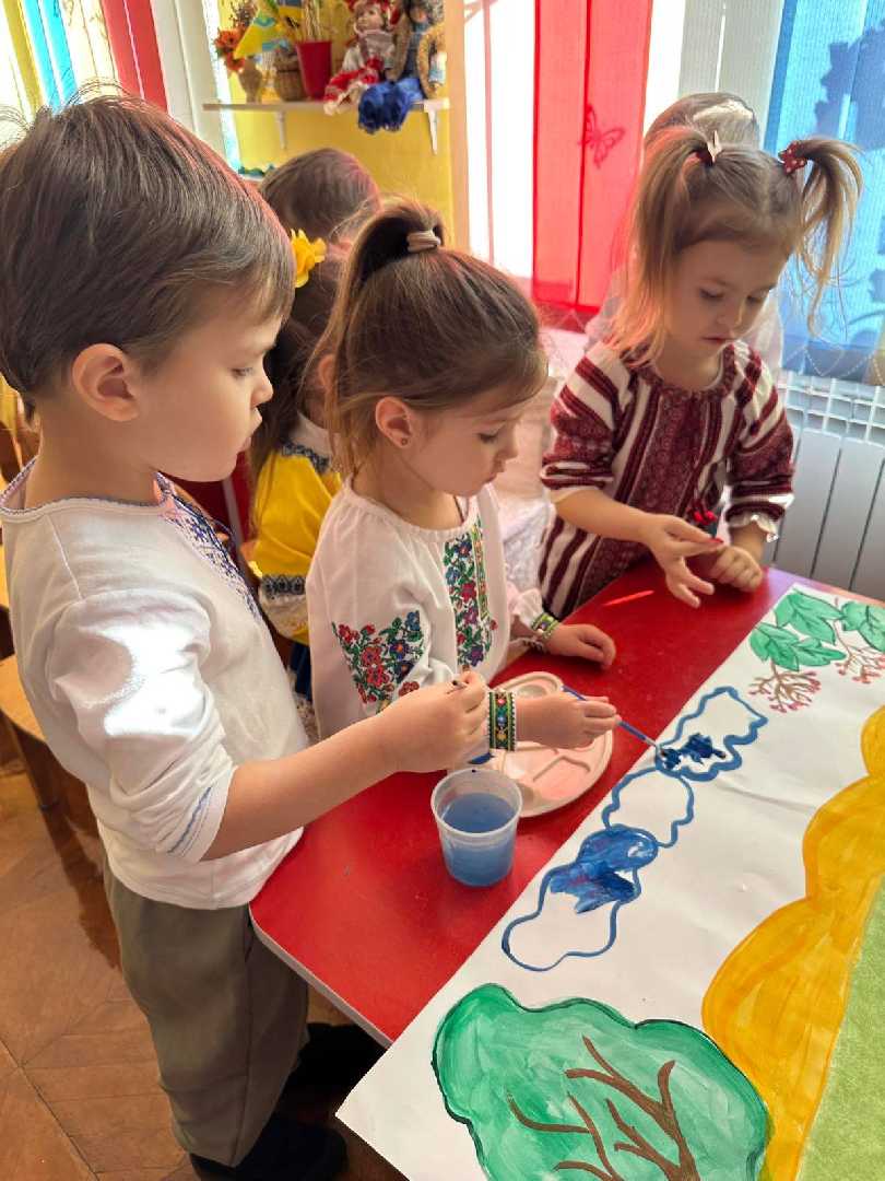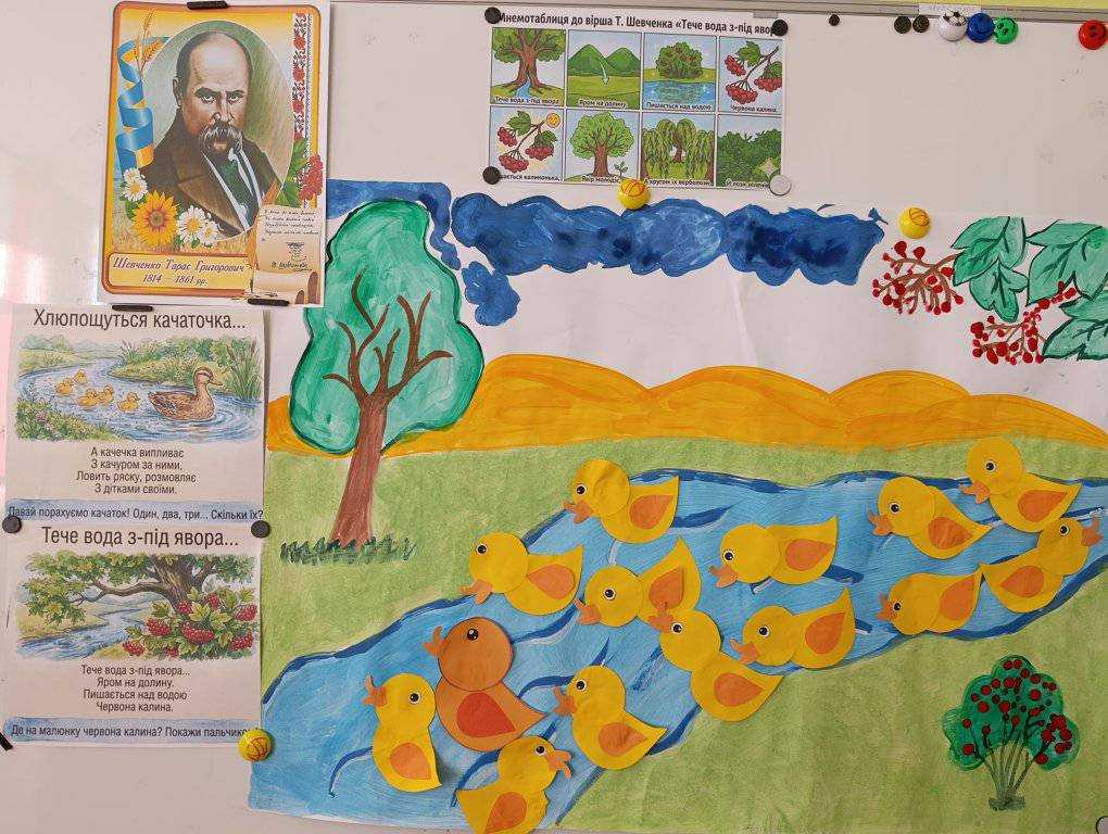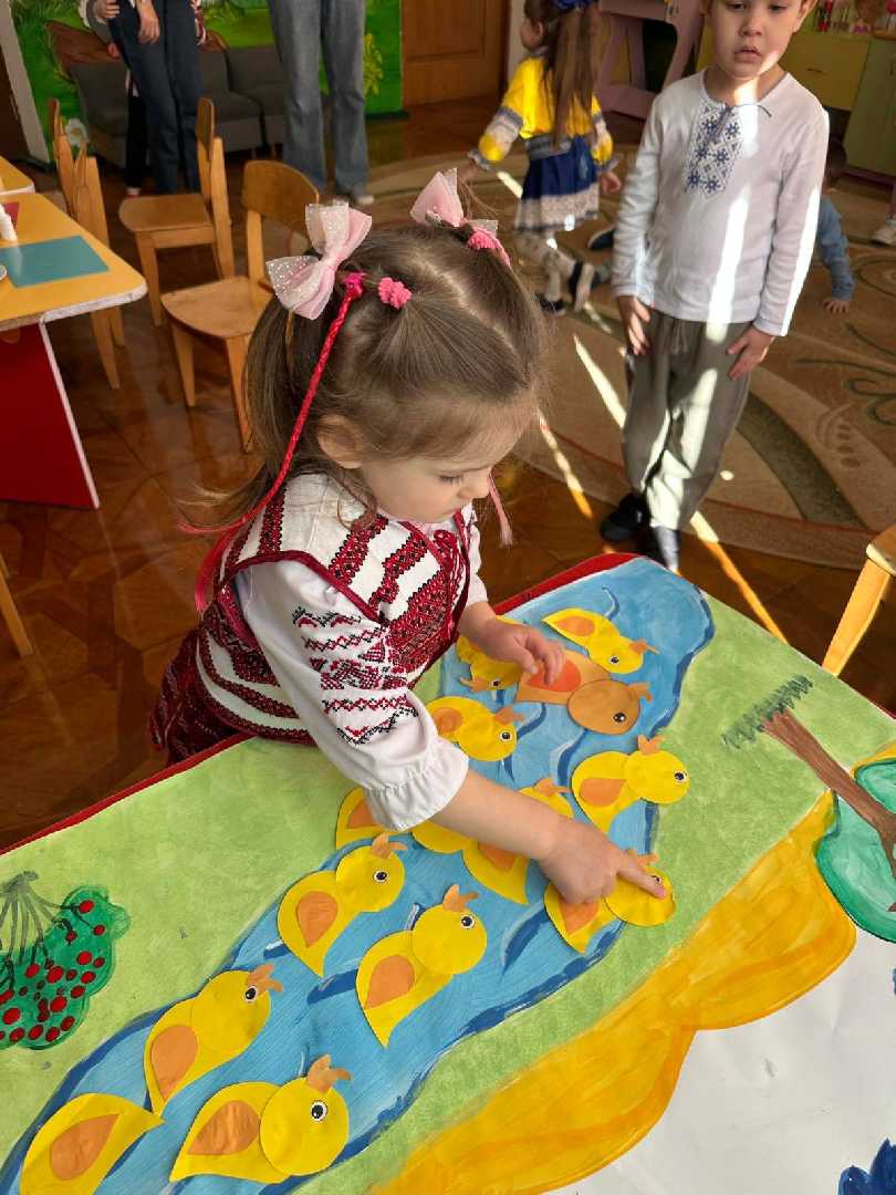 Наші маленькі українці та україночки не лише слухали вірші, а й створювали власні шедеври- аплікацій каченят до поезії " Тече вода з - під явора" Т.Г.Шевченка. Вишиванки, щирі оченята та перші усвідомлені слова про любов до України — це те, що дає надію на наше світле майбутн