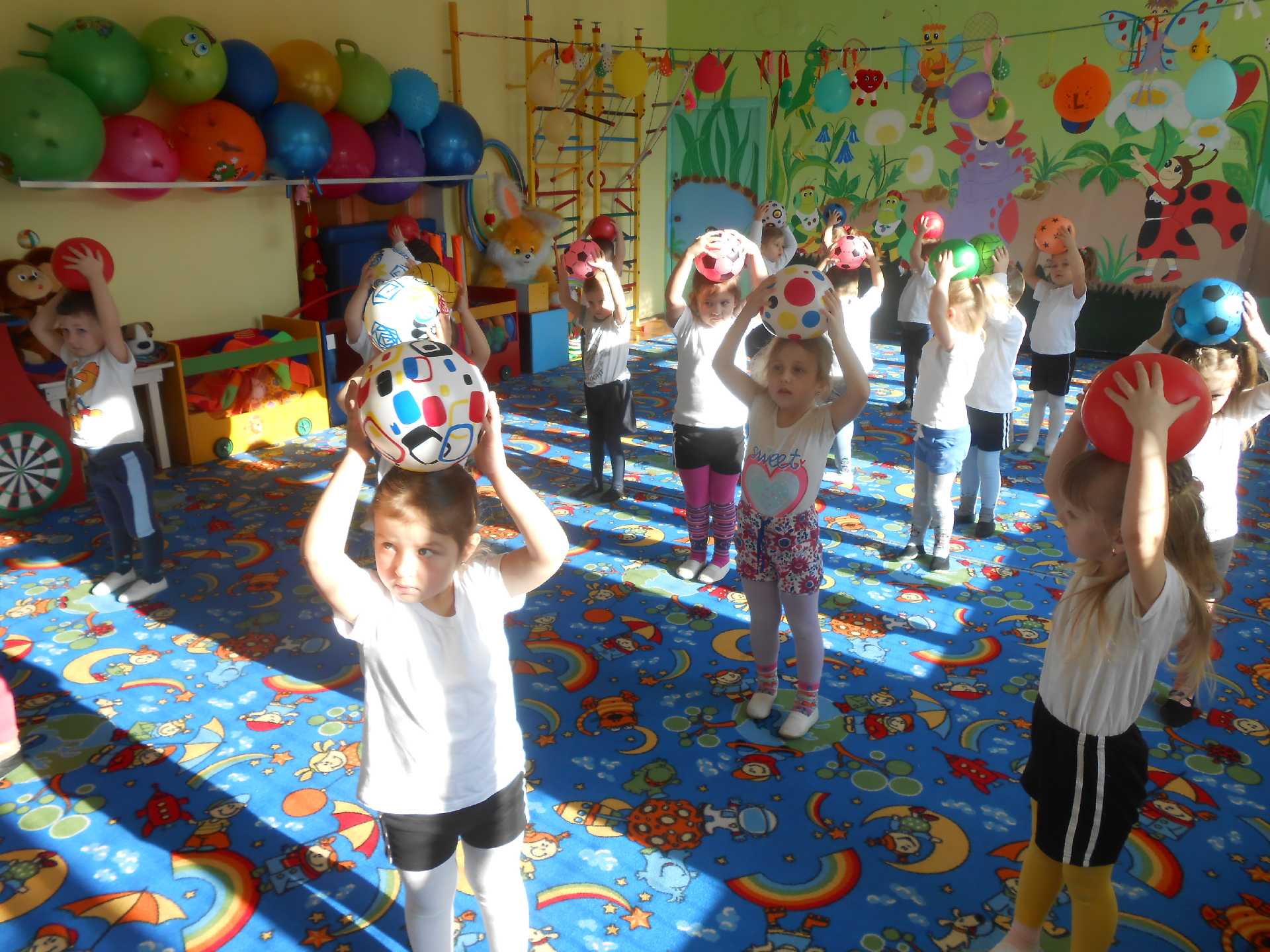 Цікаві та динамічні заняття з фізичного виховання проводить інструктор з фізкультури Олена Васюк, використовуючи у роботі парціальну програму Миколи Єфименка "Казкова фізкультура". Особливо наші дошкільнята полюбляють заняття з м'ячами.