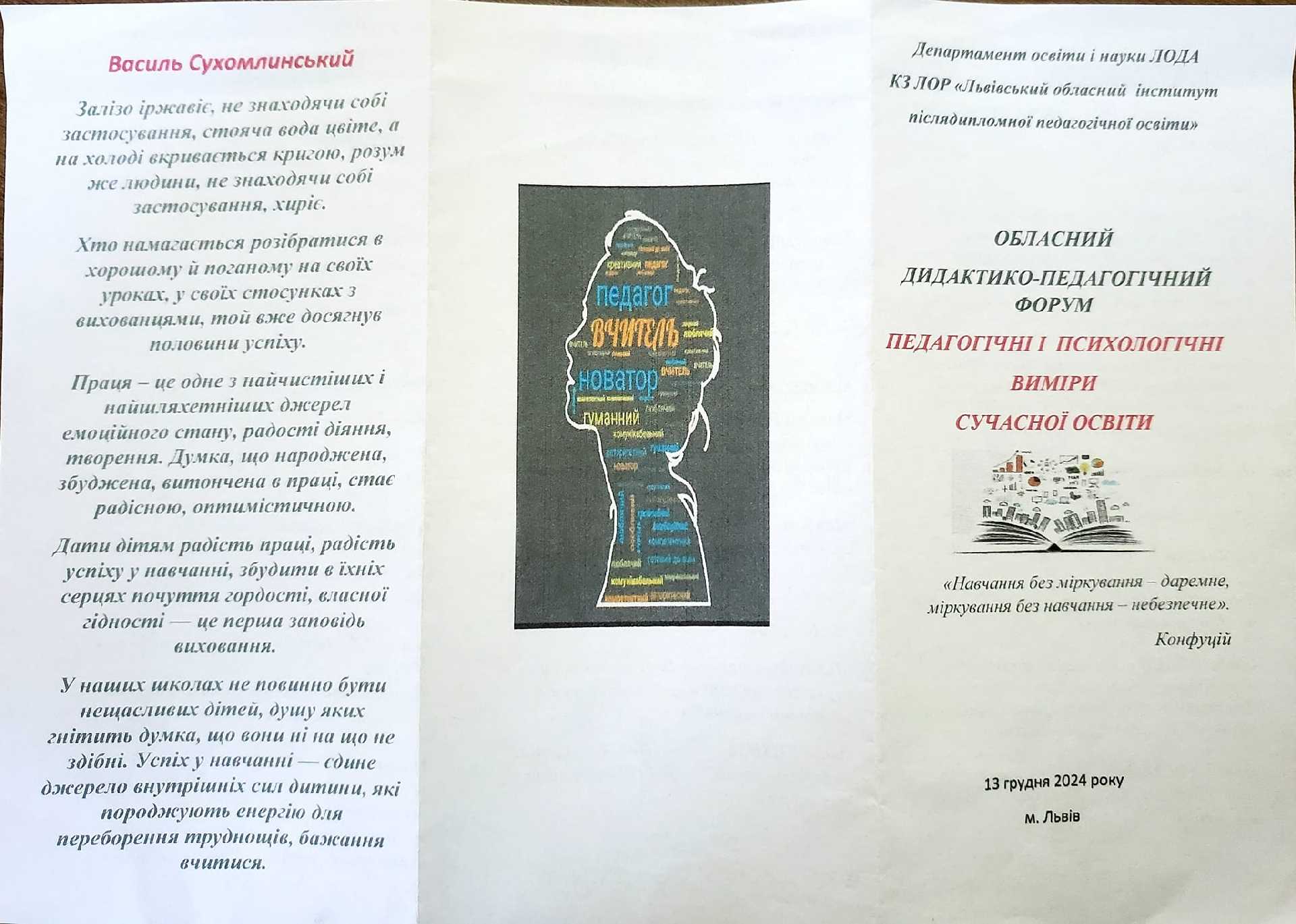 13 грудня 2024 року відбувся обласний дидактико-педагогічний форум «Педагогічні і психологічні виміри сучасної освіти» у КЗ ЛОР «Львівський обласний інститут післядипломної педагогічної освіти».