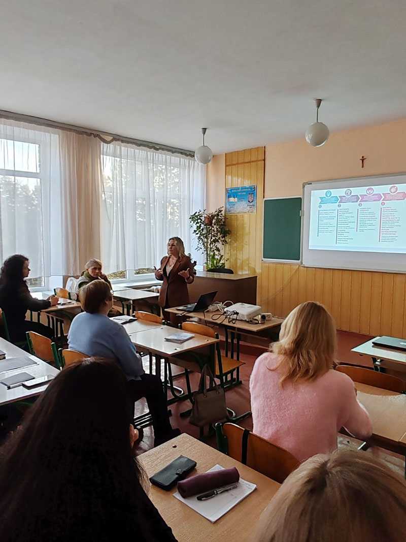 Ірина Пиріг, консультанта ЦПРПП, ще раз звернула увагу на оцінювання груп загальних результатів в математичній галузі. Відповідно до плану семінару вчителі поділилися досвідом роботи з використанням платформи Wordwall.