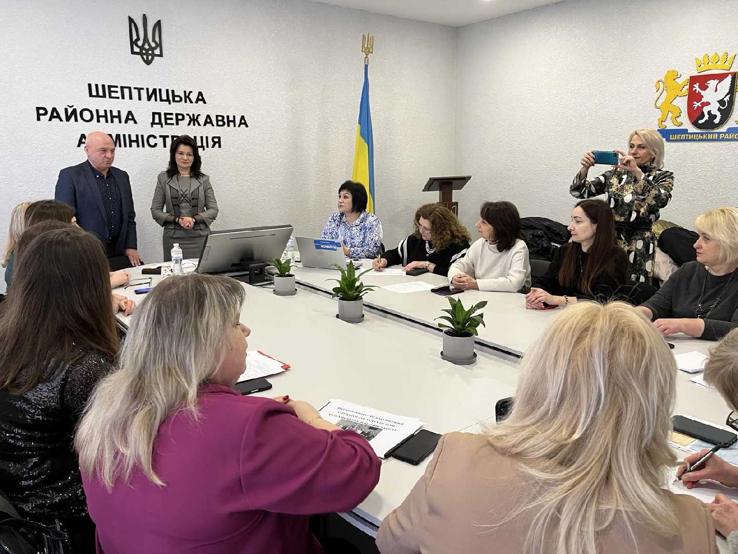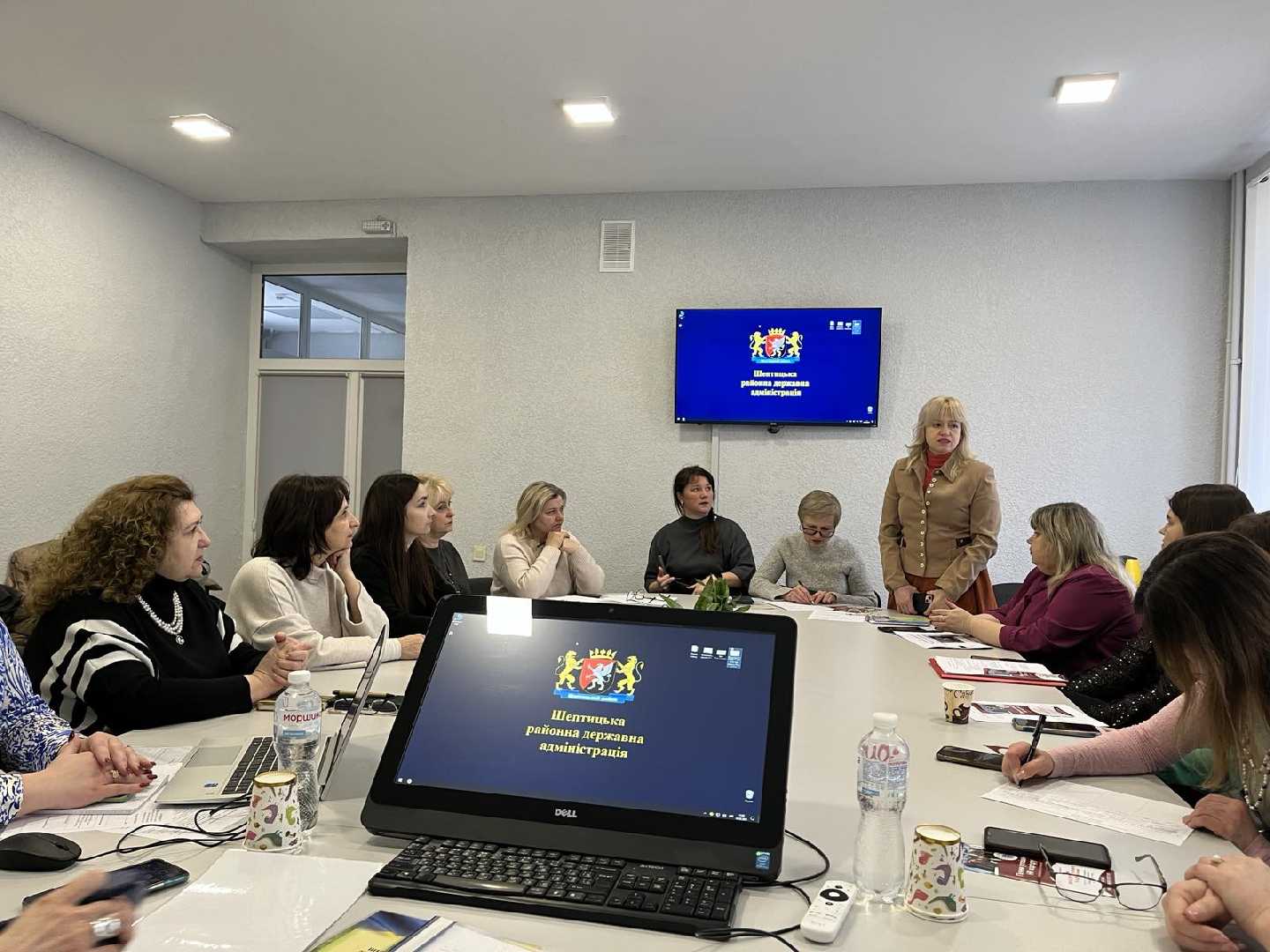 Засідання відбулося за участю Володимира Катерини, заступника голови Шептицької районної державної адміністрації, Марії Васюник-Кулієвої головного спеціаліста відділу дошкільної, загальної середньої та позашкільної освіти Департаменту освіти і науки Львівської ОДА, Руслани Антонюк начальниці відділу освіти, культури, релігій та туризму районної військової адміністрації, Жанни Кобзар, психолога ЦПРПП Шептицької міської ради, відповідальних за психологічну службу управлінь освіти територіальних громад Шептицького району, голів професійних спільнот психологічної служби.