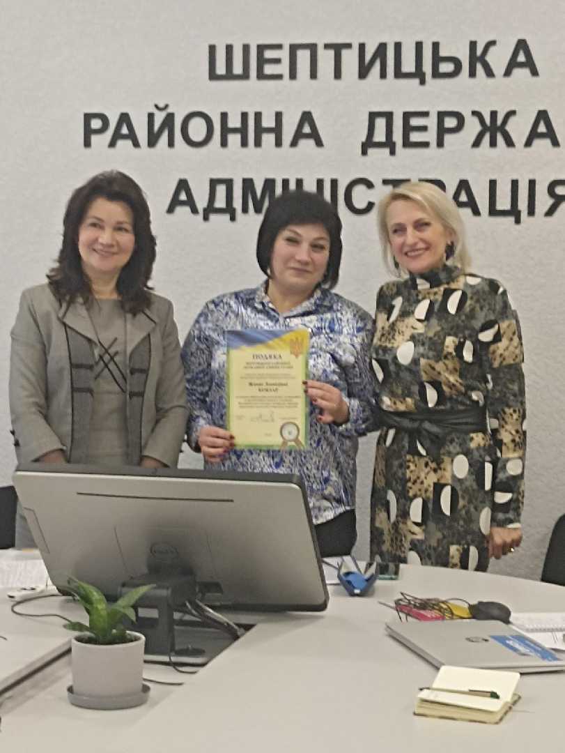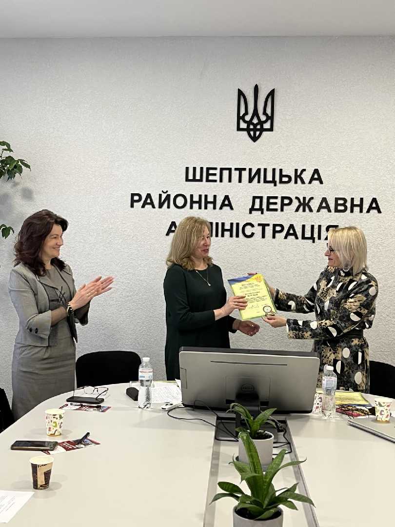Марія Васюник-Кулієва підсумувала роботу засідання ради та вручила нагороди переможцям I районного етапу Всеукраїнського конкурсу фахової майстерності практичних психологів та соціальних педагогів авторських програм "Нові технології у новій школі" у номінації "Розвиткові програми".