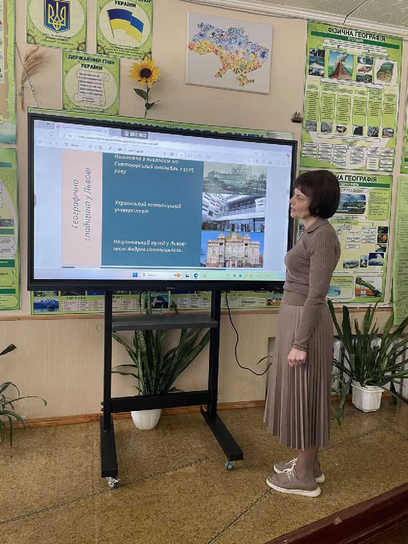 Учитель географії Раїса Тарасюк виступила з доповіддю "Географія духовної спадщини Андрея Шептицького".
