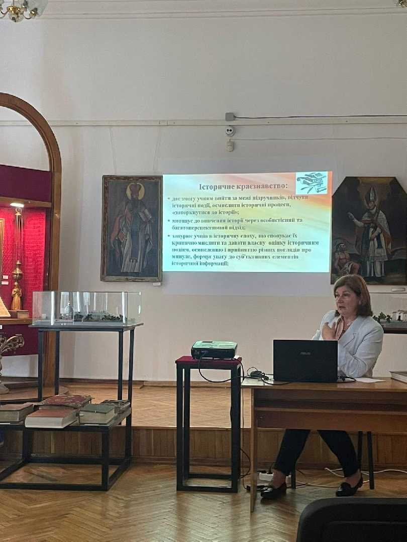 Маріанна Чорнобрива, старша наукова співробітниця музею, презентувала вчителям історії ЗЗСО мінівиставку «Стародруки в музейній колекції», а вчителі історії – організатори семінару, обмінялися з колегами досвідом вивчення історичного краєзнавства.