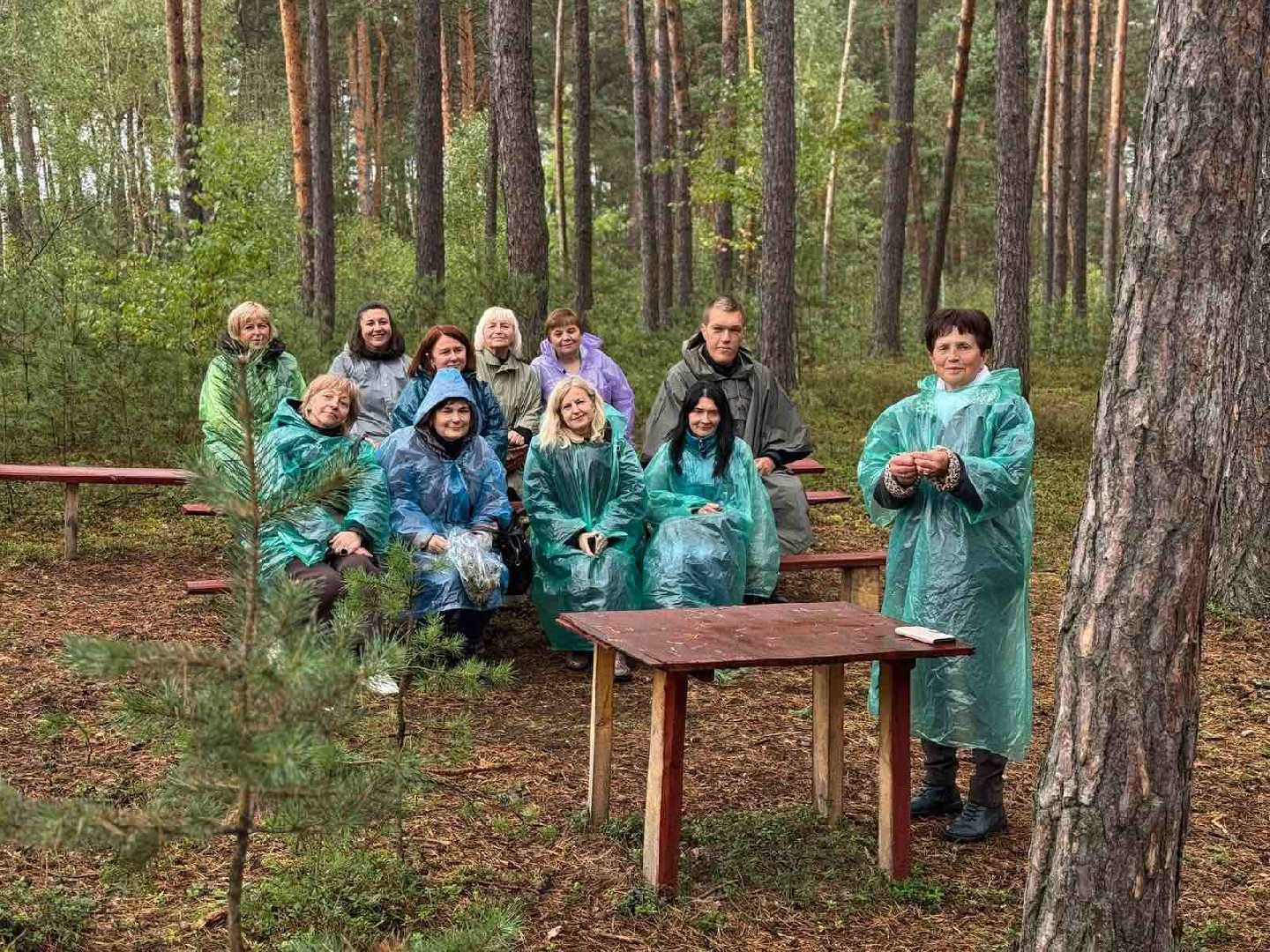 Учасники семінару пройшли лісовою стежкою. Визначали сторони горизонту за зрізом сосни, визначали вік дерев, говорили про дюни та роль боліт у природі, провели фенологічні спостереження за станом природи.