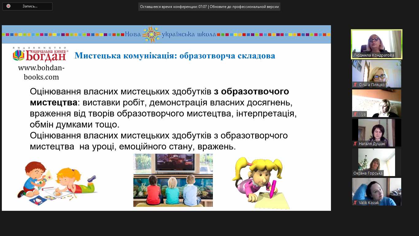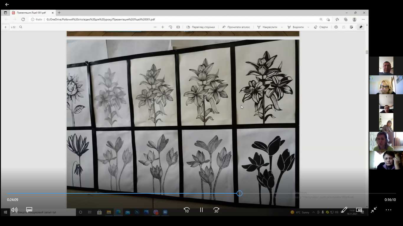 Наталя Манько, учитель Львівського художнього ліцею при Львівській національній академії мистецтв, переможець проекту «Успішний вчитель-2015», художник-ілюстратор друкованих видань, представила до перегляду свої відео уроки, поділилась досвідом роботи, шляхами підвищення мотивації дитини до творчості під час дистанційного навчання.