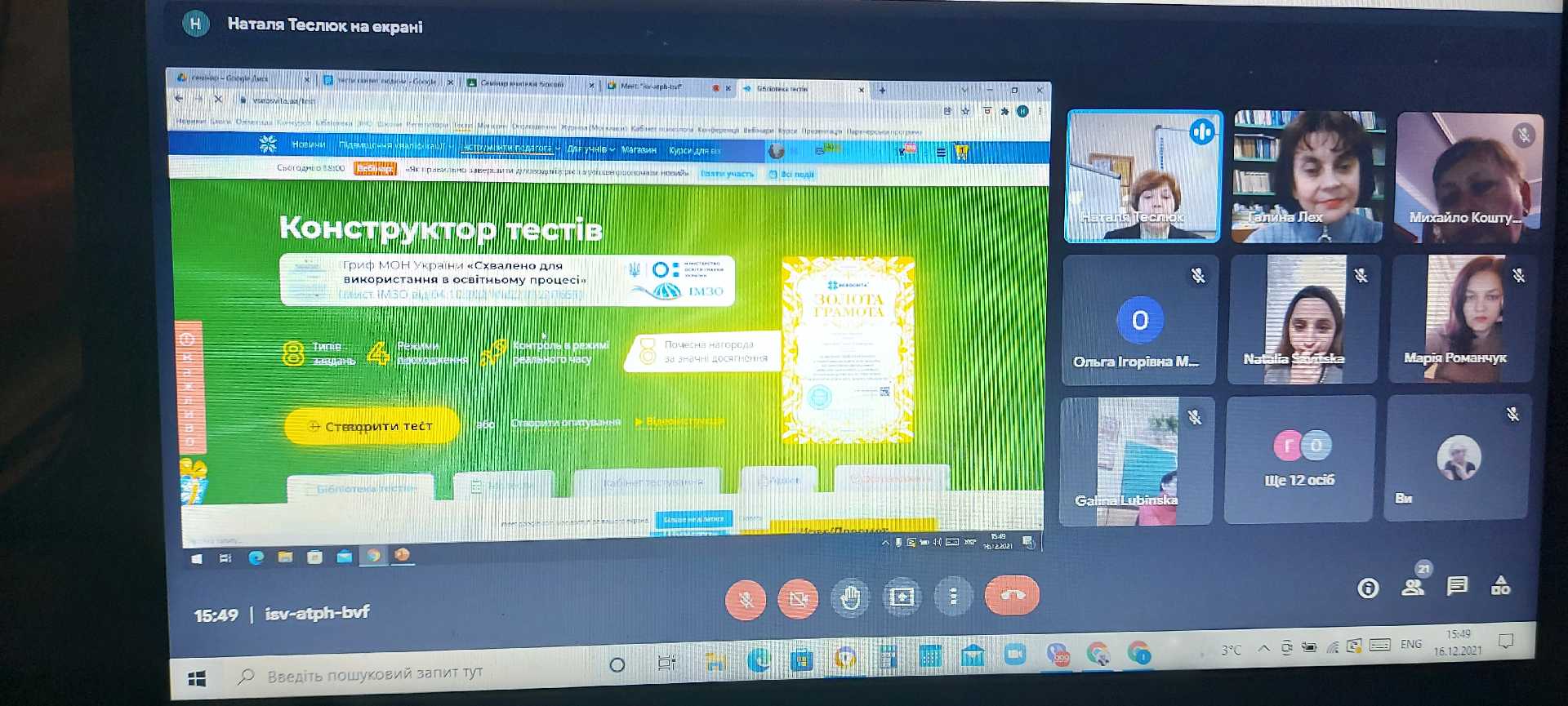 16 грудня 2021 року відбувся онлайн семінар вчителів біології «Використання GoogleClassroom для організації дистанційного навчання».
