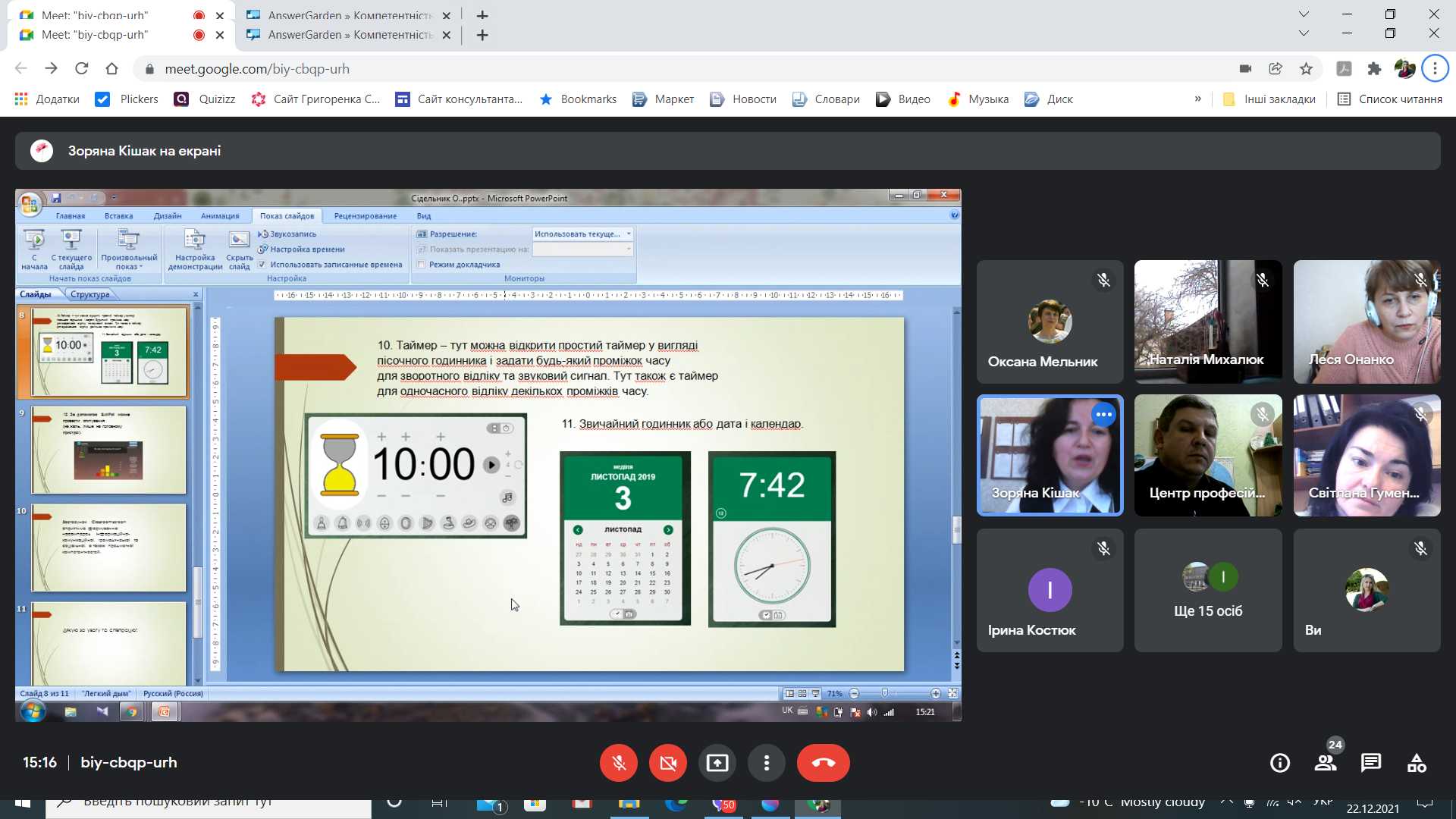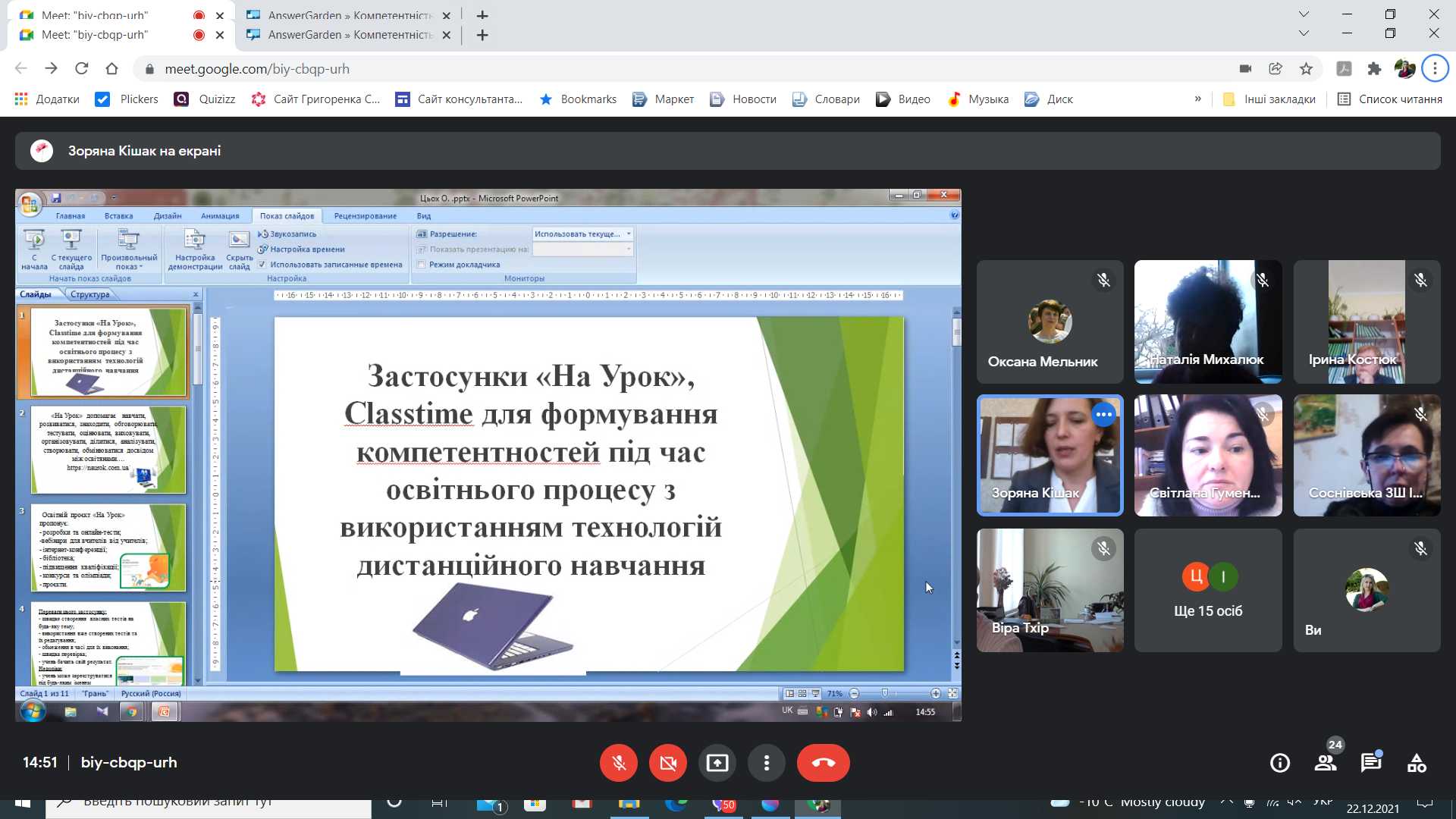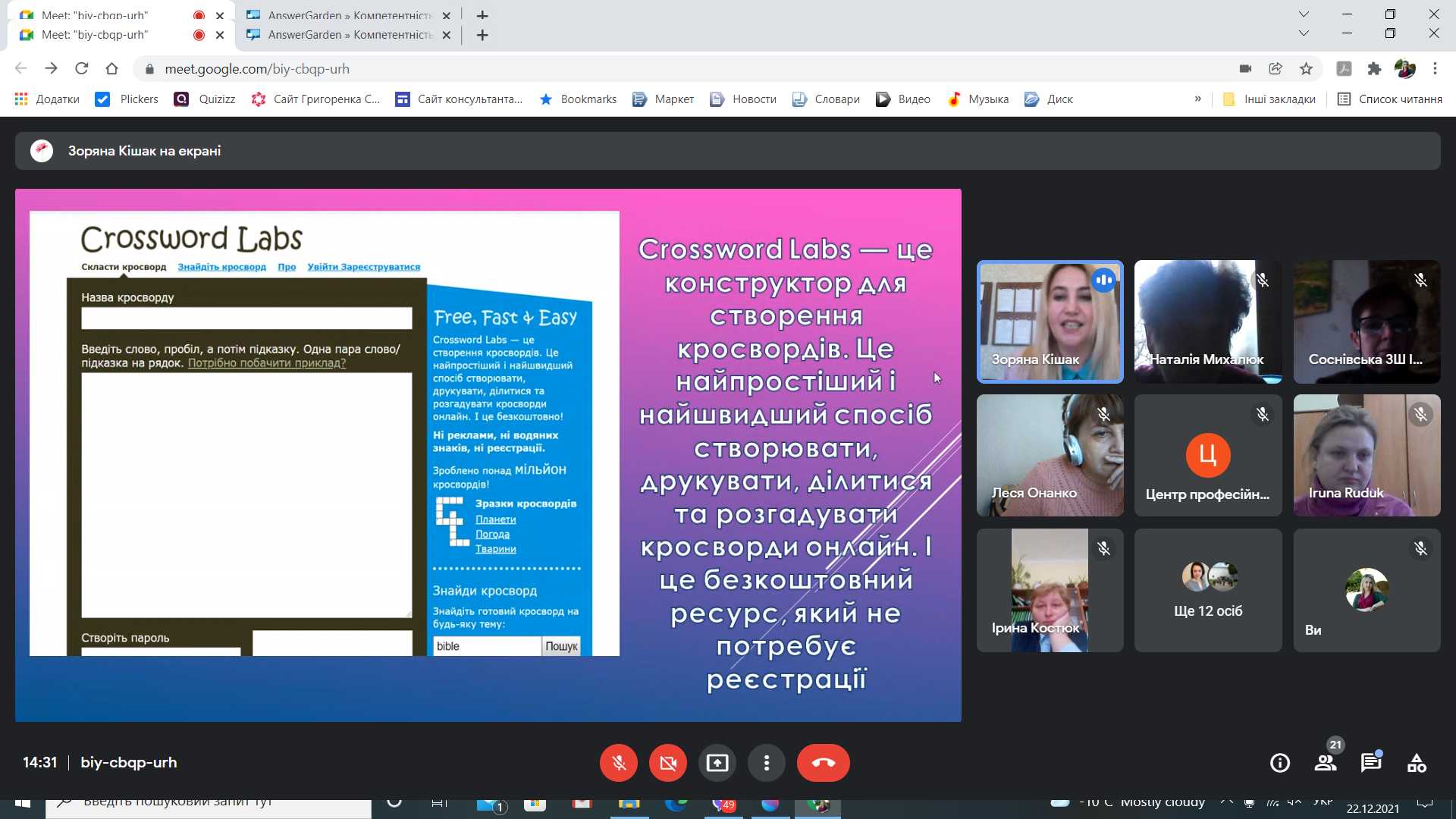 Педагоги школи Ірина Пиріг, Оксана Цьох, Олена Сідельник, Наталія Дилин продемонстрували та поділились досвідом з учасниками семінару як можна використати різні сучасні інтерактивні застосунки для якісного та ефективного формування компетентностей здобувачів освіти під час освітнього процесу з використанням технологій дистанційного навчання. Цікаво та змістовно вони розповіли як під час дистанційного навчання потрібно використовувати застосунки: Crossword Labs, Classtime, Classroomscreen, Flash Back Express та український освітній онлайн-портал для вчителів «На урок». Учасники семінару виконували завдання, які були запропоновані доповідачами. Ці інструменти дозволяють залучити до активної співпраці онлайнову аудиторію, зробити освітній процес цікавим, ефективним, компетентнісно зорієнтованим.