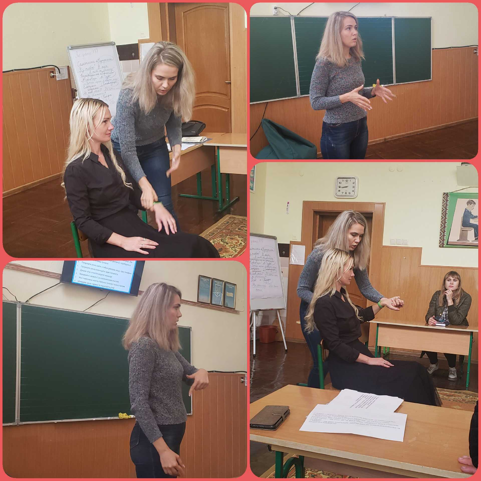 Катерина Зинчак, практичний психолог ЗДО №16, продемонструвала техніки для подолання емоційного вигорання, тривожних станів, що виникають під час воєнної ситуації.