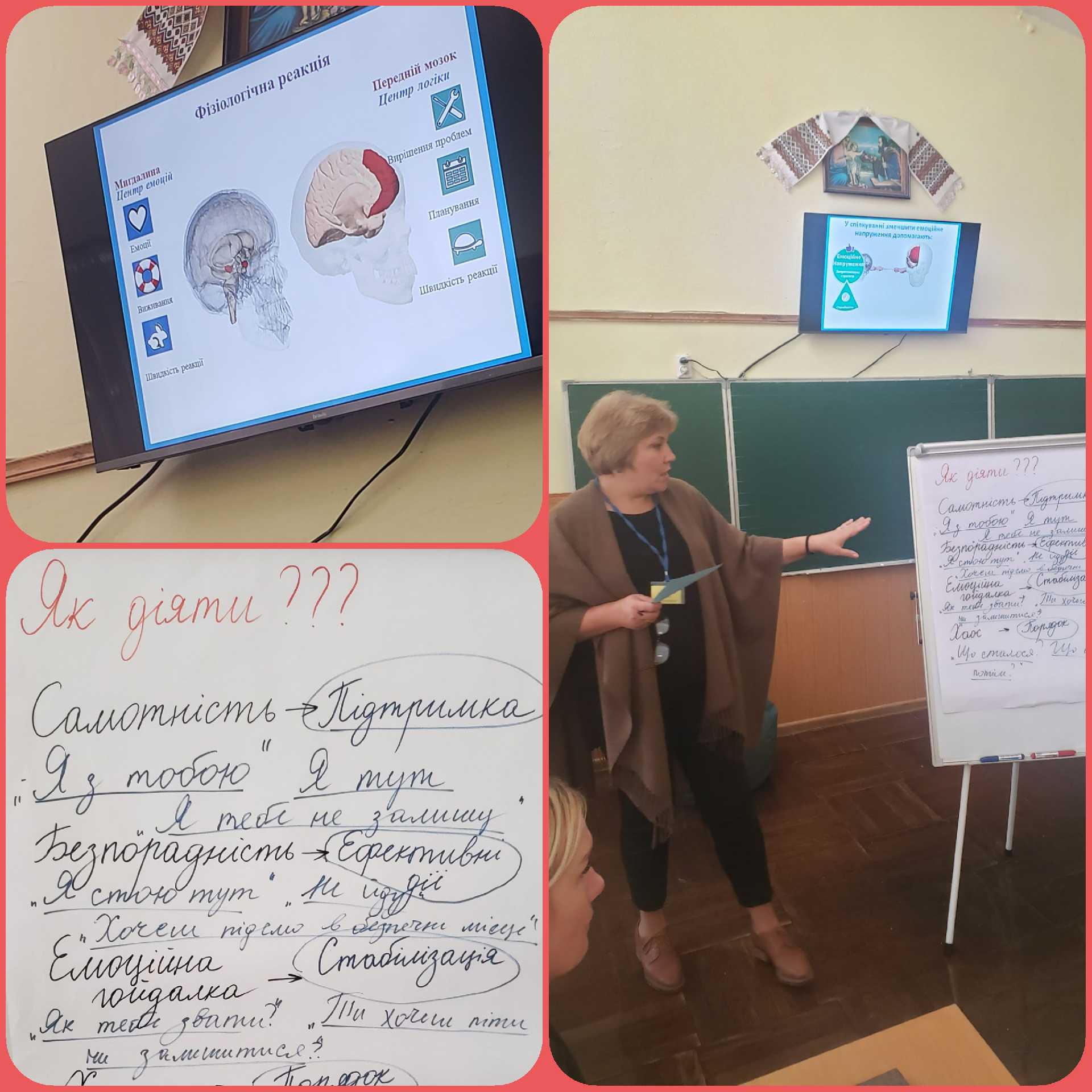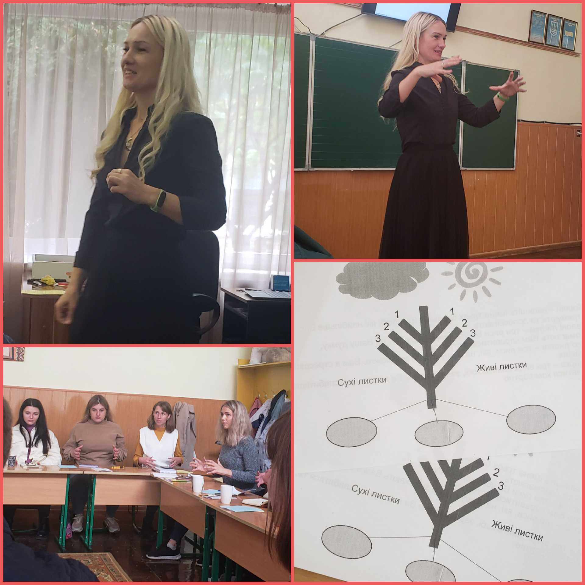 З принципами втручання у час травматичної події та першою ментальною допомогою в стресовій ситуації за моделлю «Six C's» Dr. Moshe Farchi Dr ознайомили присутніх Ольга Беркита, практичний психолог та Ірина Пасієвич соціальний педагог Гімназії імені родини Луговських.