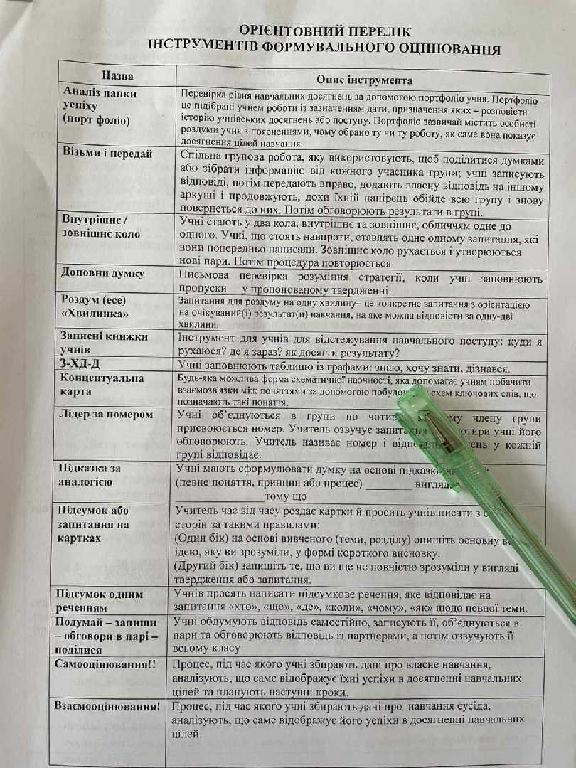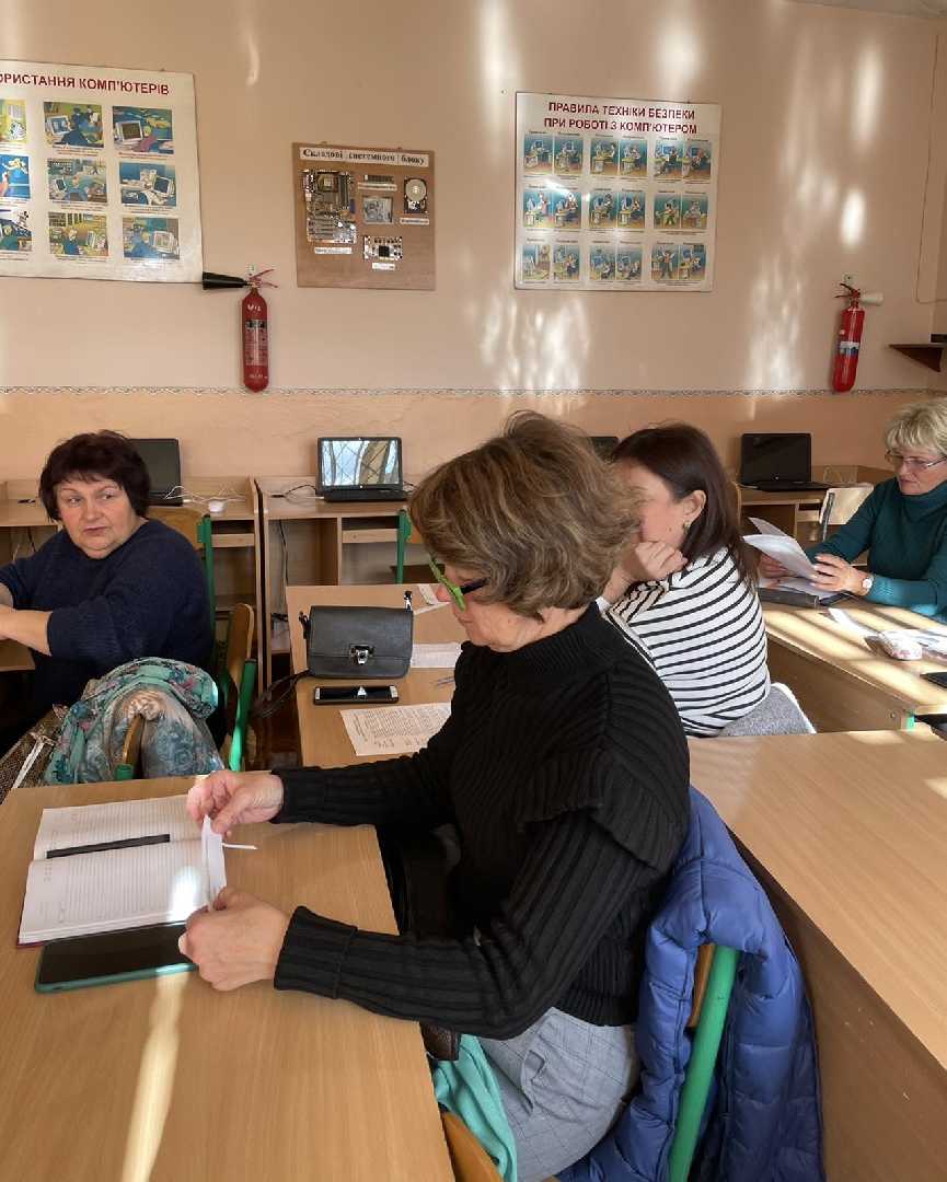 Зустріч було проведено за допомогою прийомів та методів, які можна використати під час уроків для мотивації учнів до діяльності та актуалізації наявного особистісного досвіду, рефлексії на результати навчання. Зоряна Мирославівна акцентувала на нормативній базі оцінювання, його критеріях, видах, а також на формі запису в журналах, веденні щоденника спостережень, а ще - вручила учасникам зустрічі призи за активність.