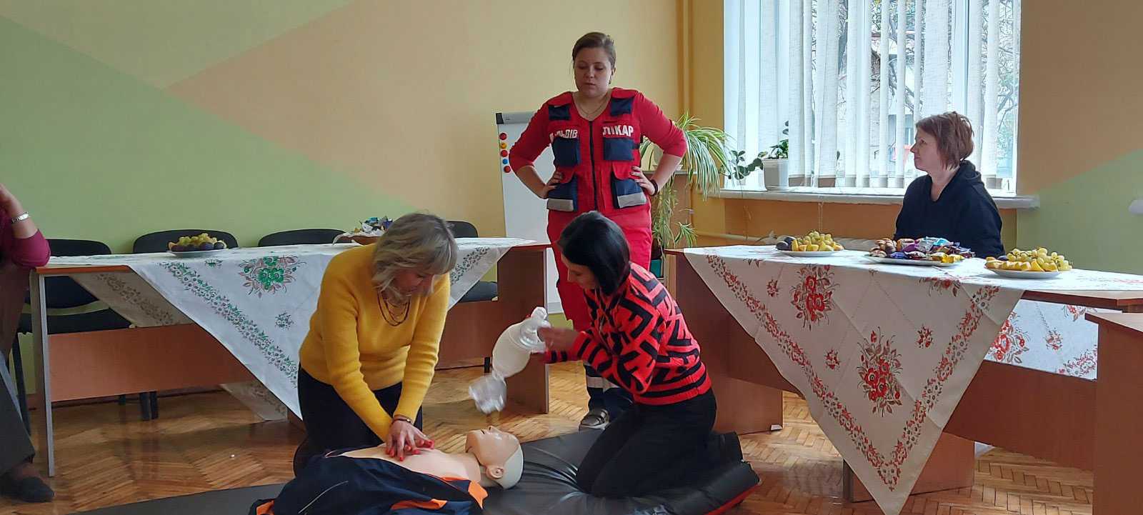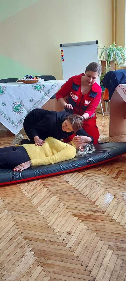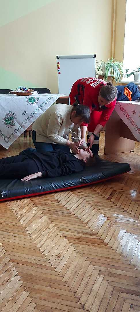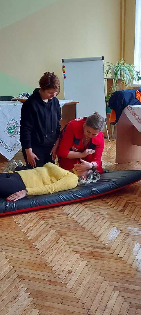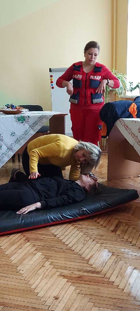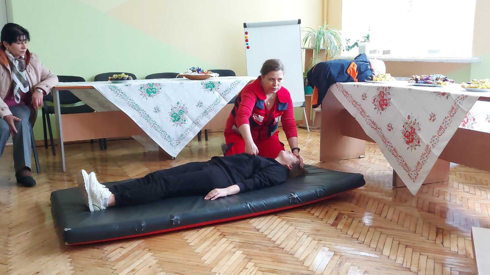 Ірина Сергіївна Берегівська, лікар з медицини невідкладних станів ЦЕМД МК пункт «Червноград», ознайомила присутніх з видами кровотеч та способами їх зупинки (підручні засоби, джгути, тампонування); з методикою серцево – легеневої реанімації; з методами домедичної допомоги при втраті свідомості у дітей та дорослих.
