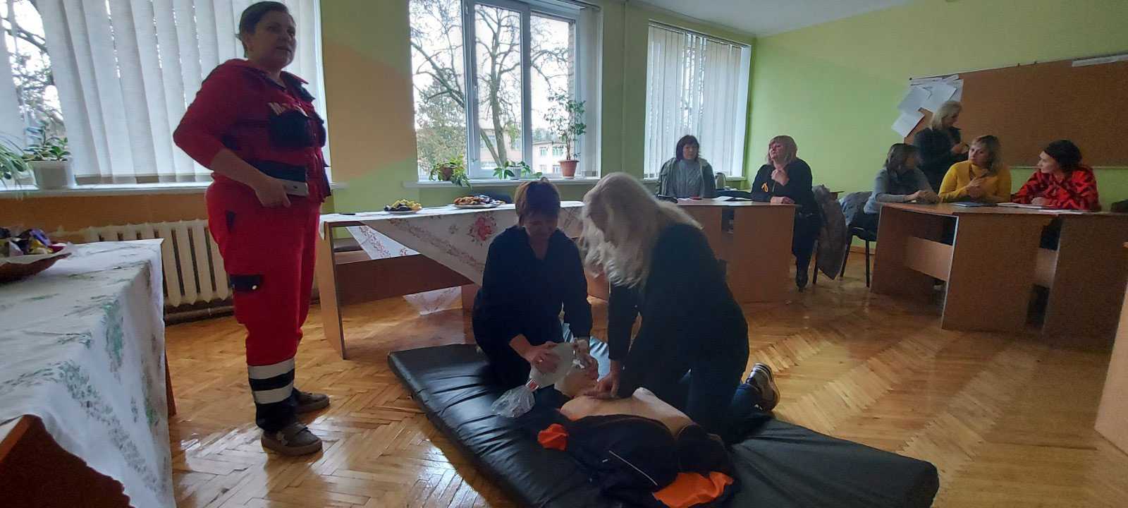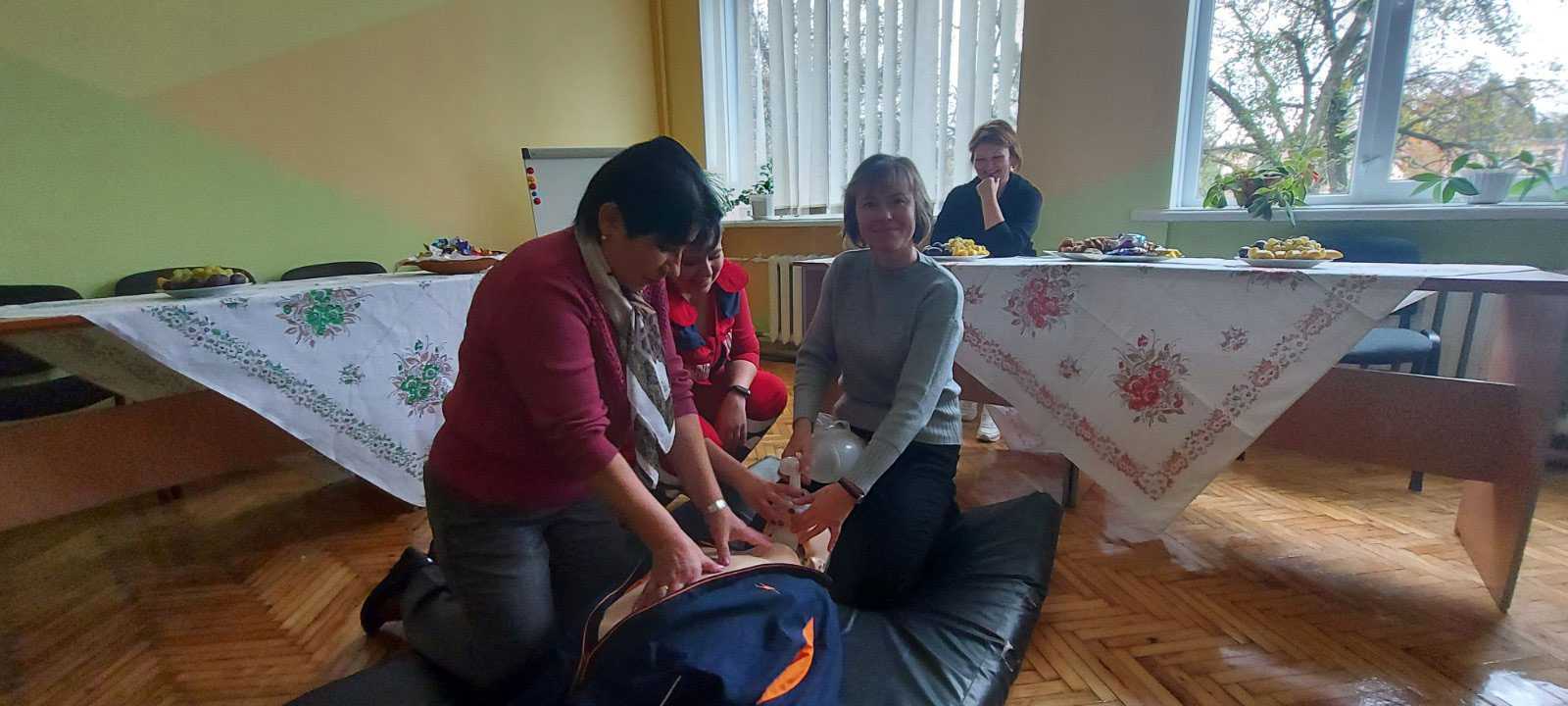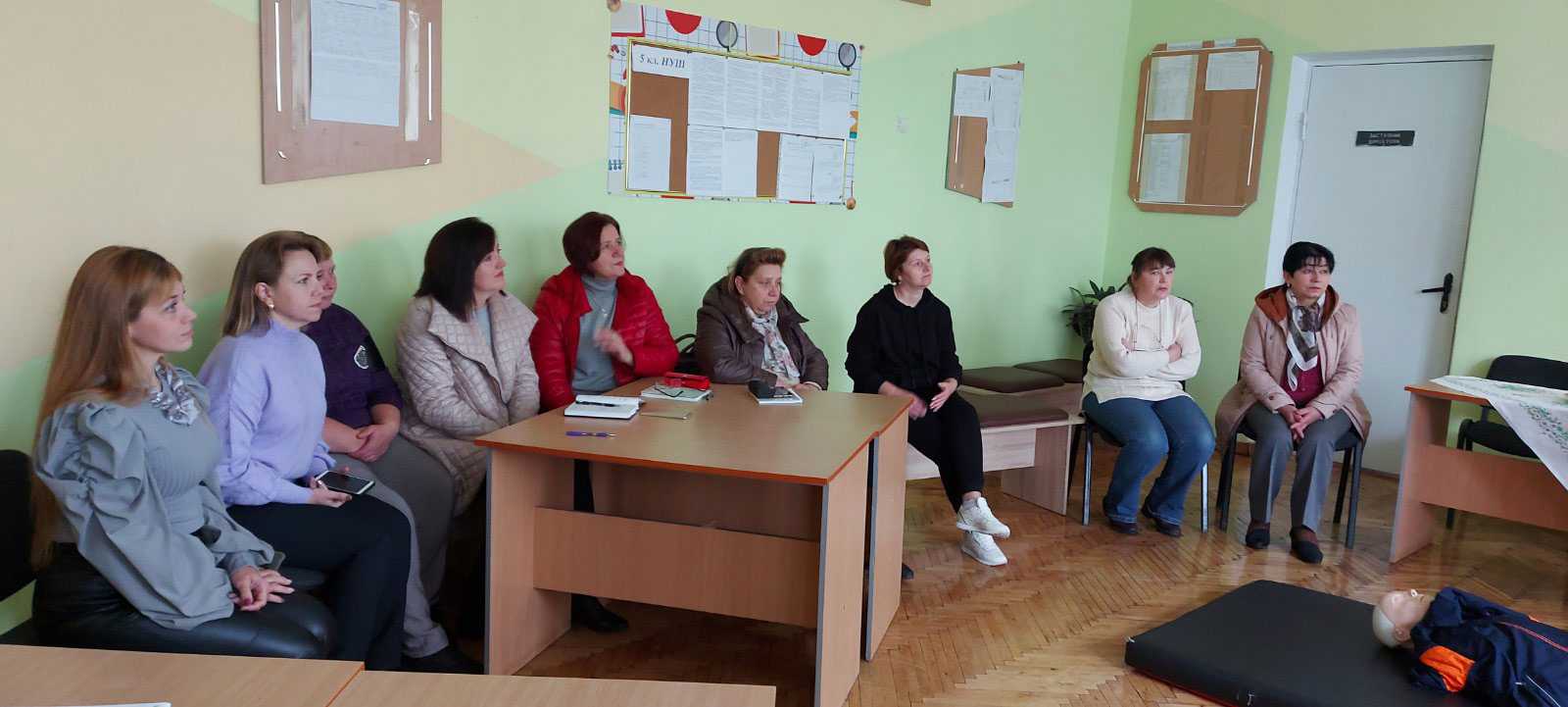 Ірина Сергіївна Берегівська, лікар з медицини невідкладних станів ЦЕМД МК пункт «Червноград», ознайомила присутніх з видами кровотеч та способами їх зупинки (підручні засоби, джгути, тампонування); з методикою серцево – легеневої реанімації; з методами домедичної допомоги при втраті свідомості у дітей та дорослих.