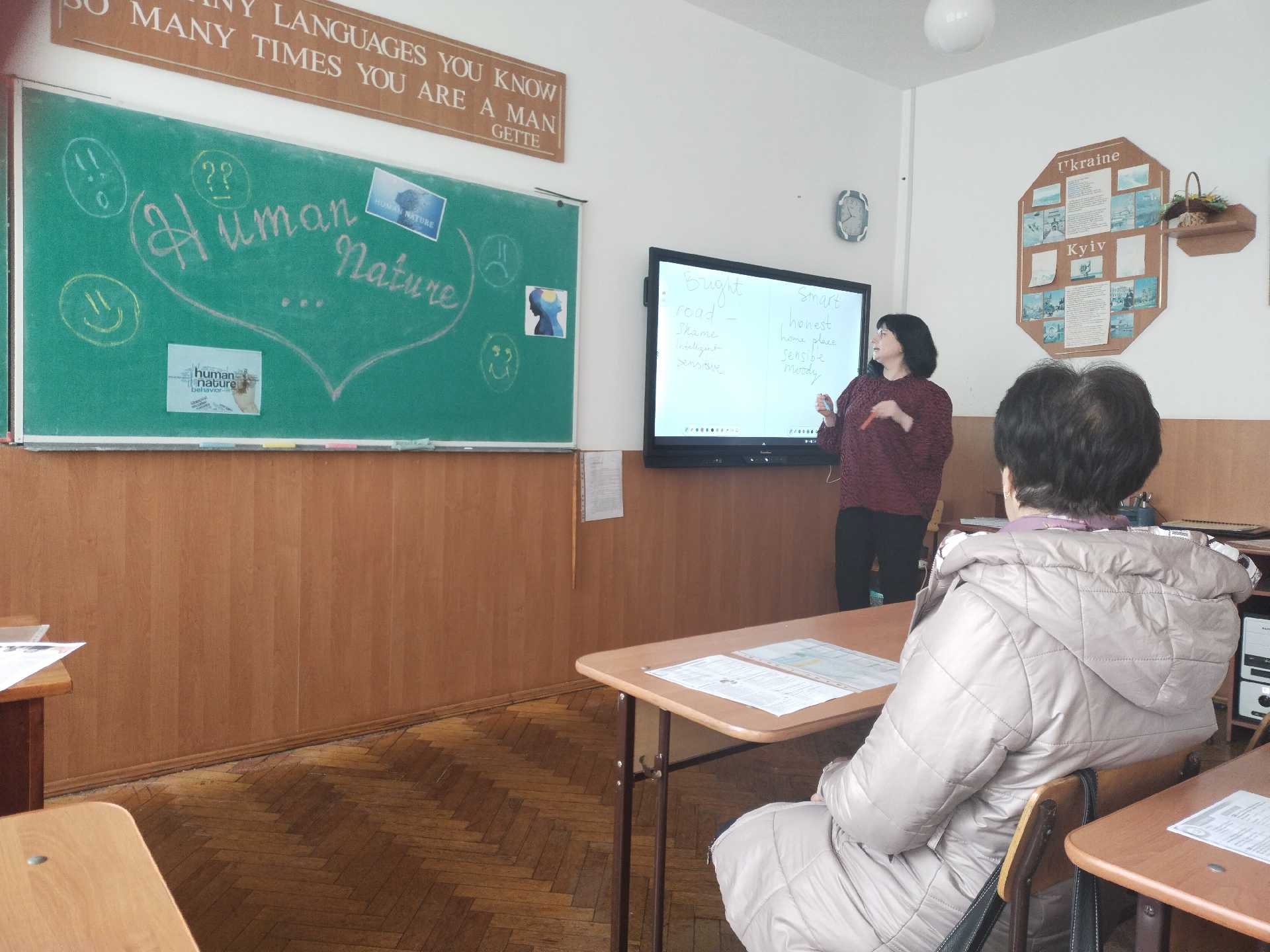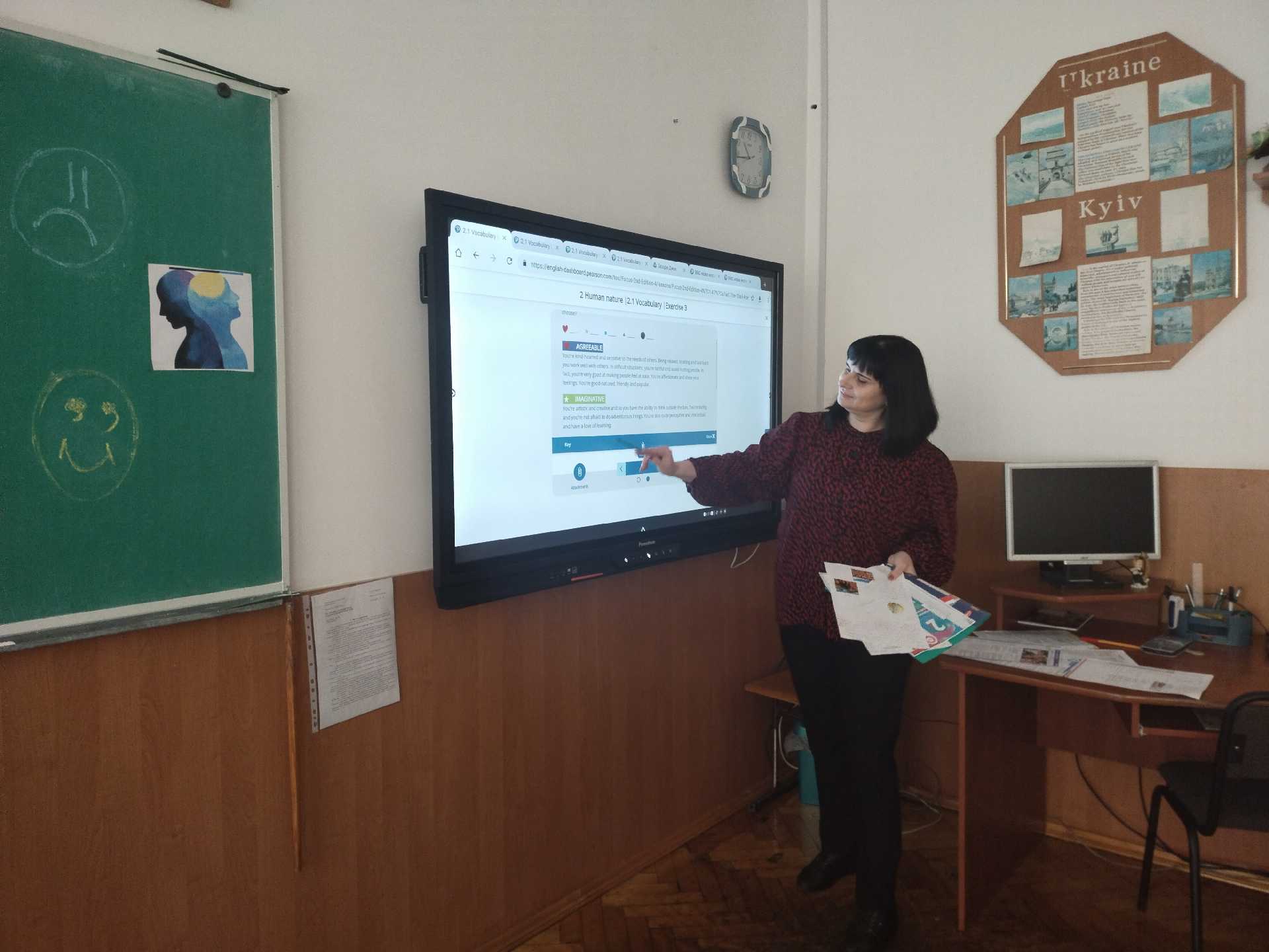 До уваги присутніх був запропонований практичний майстер - клас “ Human Nature” від Клепак Наталії Осипівни з використанням інтерактивної дошки Smart-board на уроках англійської мови. Гармонійно поєднавши різні види завдань учителька продемонструвала багатофункціональність інтерактивної дошки , що поєднує у собі звичайну маркерну дошку з широким спектром комп'ютерних можливостей.