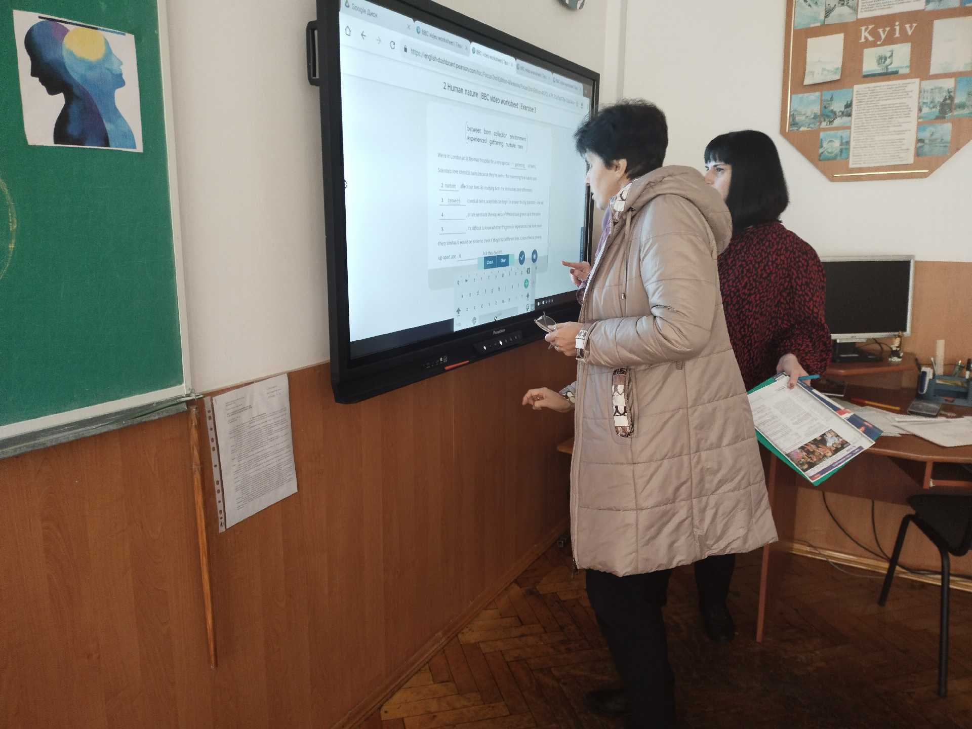 Під час семінару вчителі переконалися як заздалегідь підготовлений та підібраний навчальний матеріал у ході його використання у поєднанні з інтерактивною дошкою слугує якісним базисом для введення або активізації матеріалу уроку, повторення і закріплення мовних моделей та граматичних структур, удосконалення мовленнєвих умінь і навичок іноземної мови.