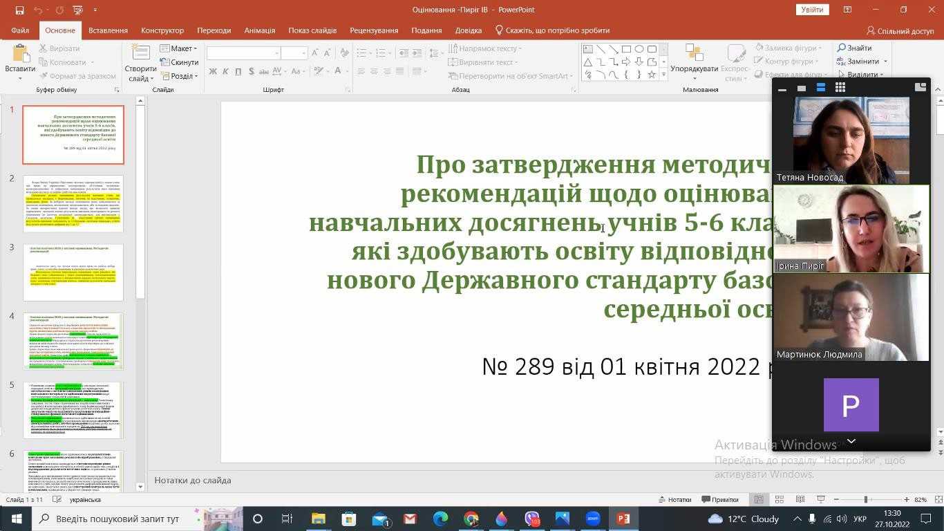 Також консультант наголосила на особливостях оцінювання та введення сторінки класного журналу природничої освітньої галузі в 5-х класах НУШ.