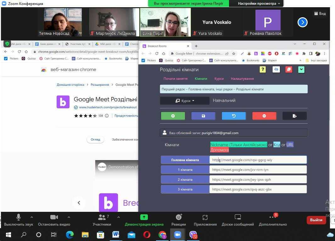 #розширення Google Meet Breakout Rooms, за допомогою якого можна створювати переговорні кімнати для організації групової діяльності учасників освітнього процесу.