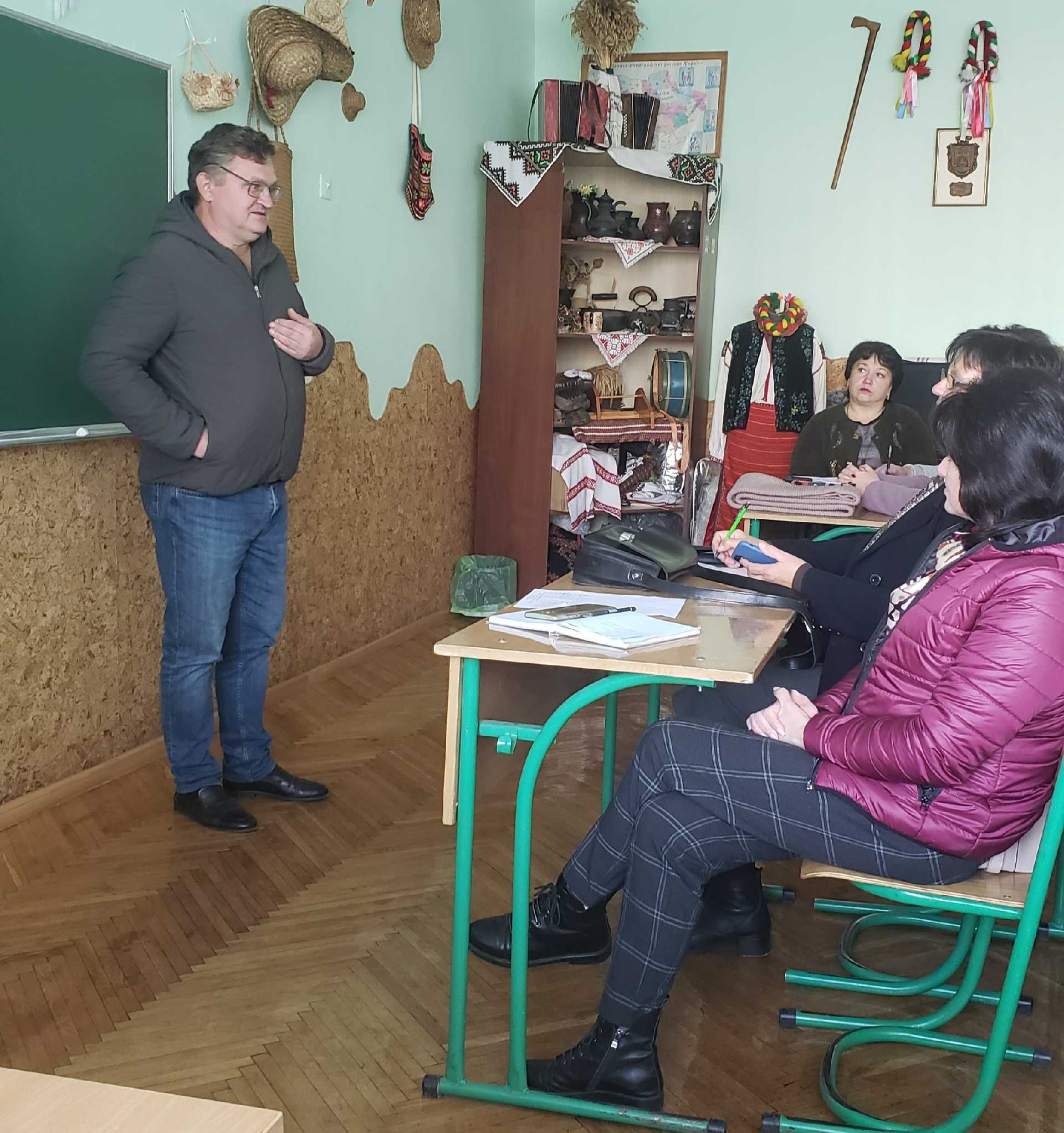 Микола КАЦЮБА ознайомив присутніх з питаннями формування регіонального замовлення щодо підвищення кваліфікації педагогічних працівників на 2023рік. Дав відповіді на запитання про тематику курсів та форми професійної траєкторії розвитку педагогів закладів загальної середньої освіти, закладів дошкільної та позашкільної освіти.
