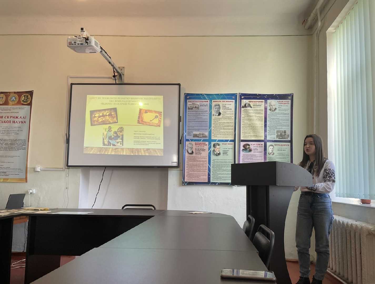 Досвідом роботи з учасниками семінару поділилася Світлана Мусій, директор Сокальської МАН імені І. Богачевського. Вона презентувала пошукову роботу юних дослідників над цікавими проєктами.