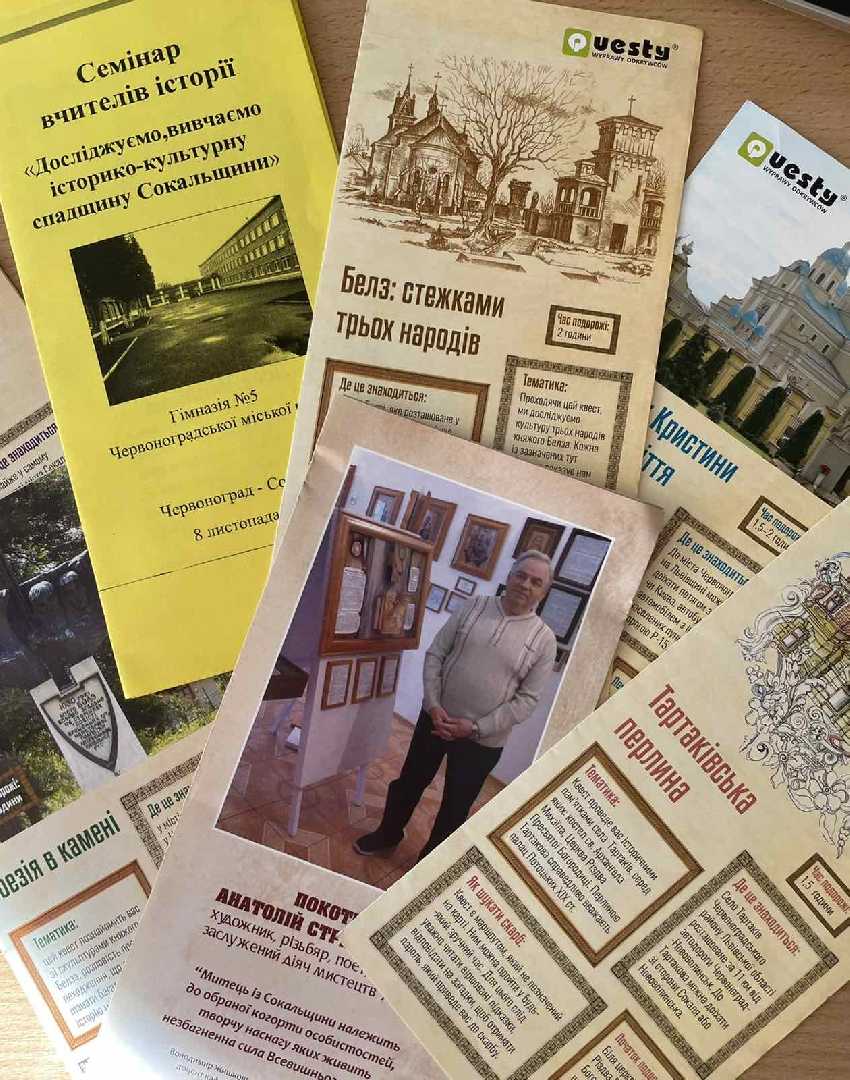З особливостями квесту як форми навчання теоретично і практично ознайомила гостей Соломія Матолінець, старшокласниця, активна учениця Сокальської МАН, переможниця конкурсів науково-дослідницьких робіт. Разом з нею ми взяли участь у краєзнавчому квесті, шукаючи скарби нашого краю.