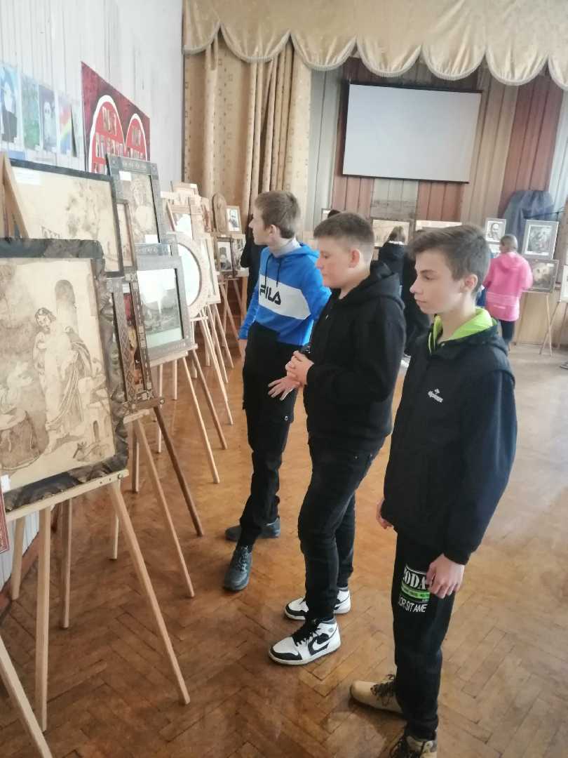Здобувачі освіти м.Червонограда відвідали виставку, під час якої ознайомились з технікою виконання різьби, випалюванням та розробками схем для вишивки технікою паркування. Розглянули виставку "Тарас Шевченко» - творчі інтерпритації.