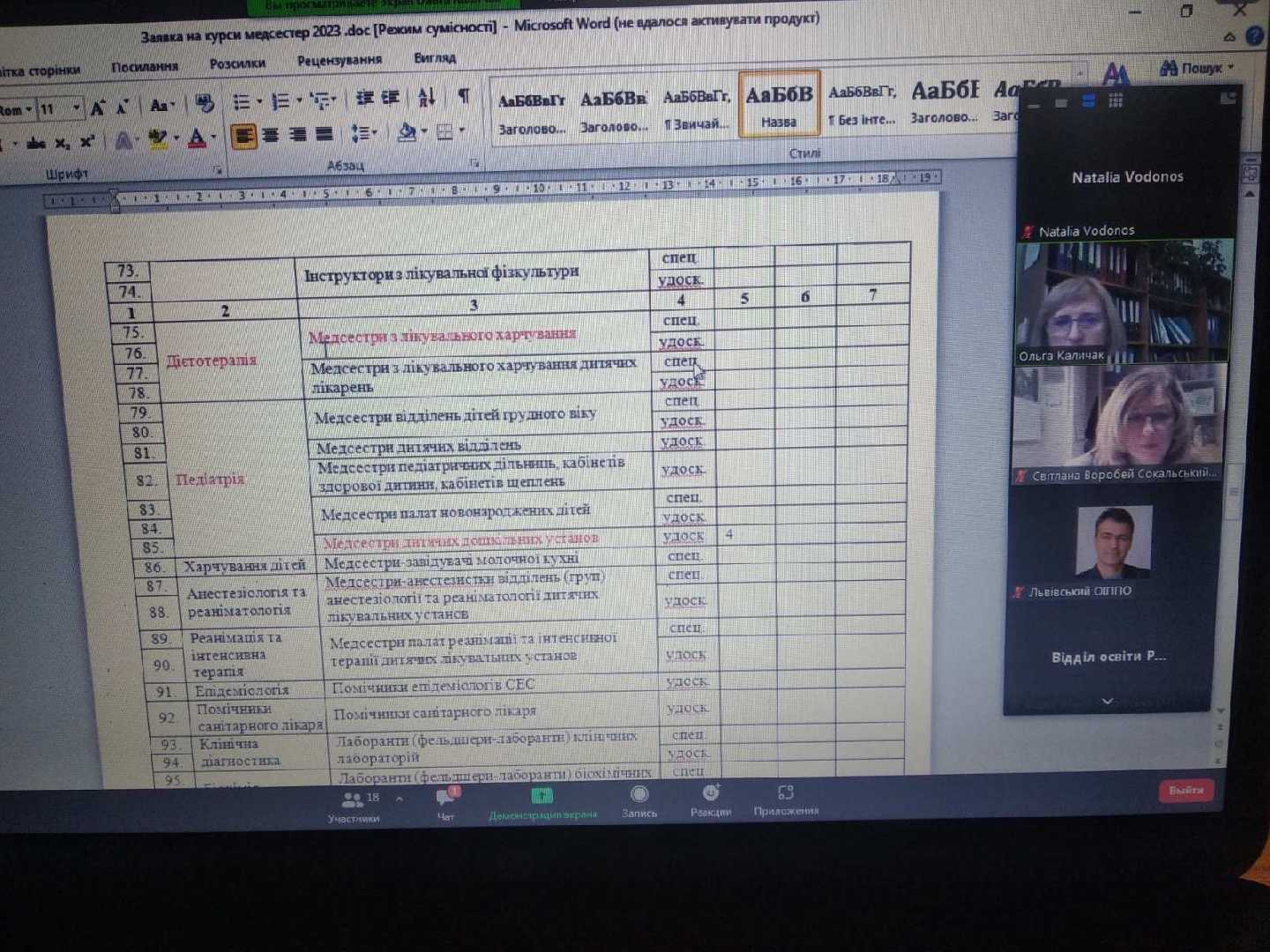 Віра Лисняк інформувала учасників наради про план курсів підвищення кваліфікації сестер медичних закладів освіти та про формування регіонального замовлення на їх навчання у 2024 році.