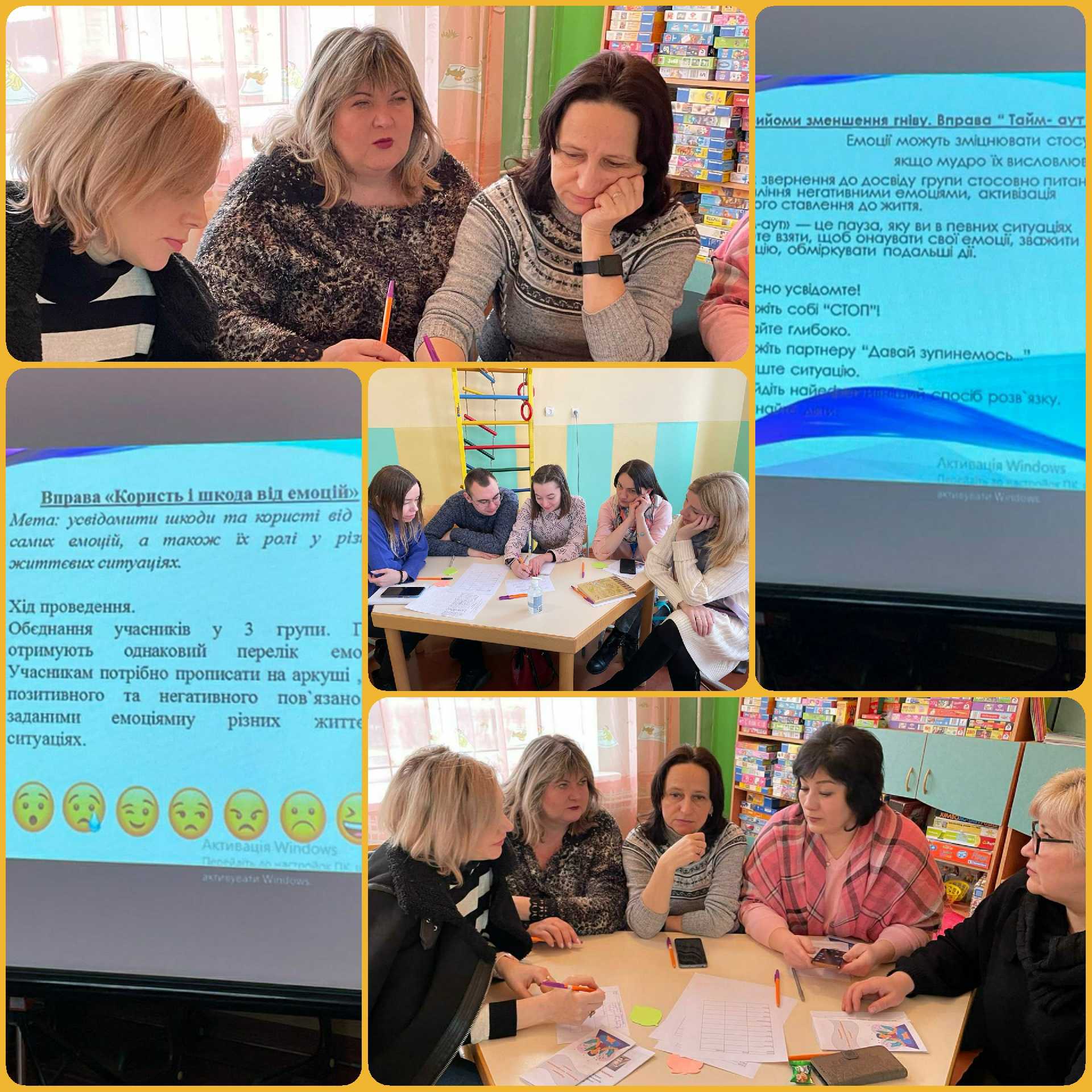 У ході семінару Мар'яна Пелипець, практичний психолог школи, висвітлила проблему емоційної компетентності. Під керівництвом психологині присутні опрацьовували практичні кейси, вправи, використавши прийоми керування емоціями та емоційними станами, вчилися ідентифікувати емоції за допомогою "сигналів тіла", зменшувати емоційне навантаження за допомогою релаксаційних вправ, розвивати емпатійність. Ці ефективні методи в подальшому працівники психологічної служби зможуть використовувати у своїй практиці для роботи з дітьми та дорослими, які пережили травмуючі події.