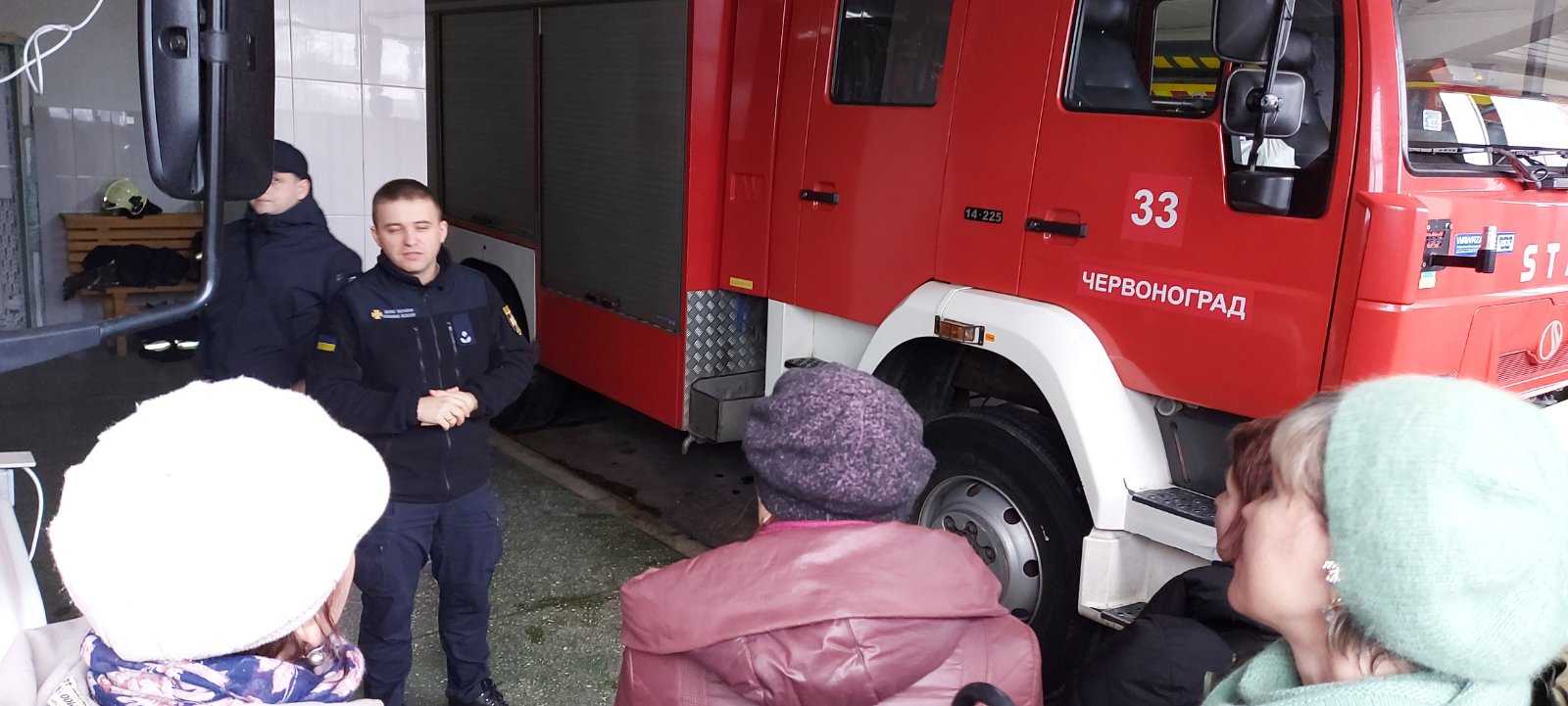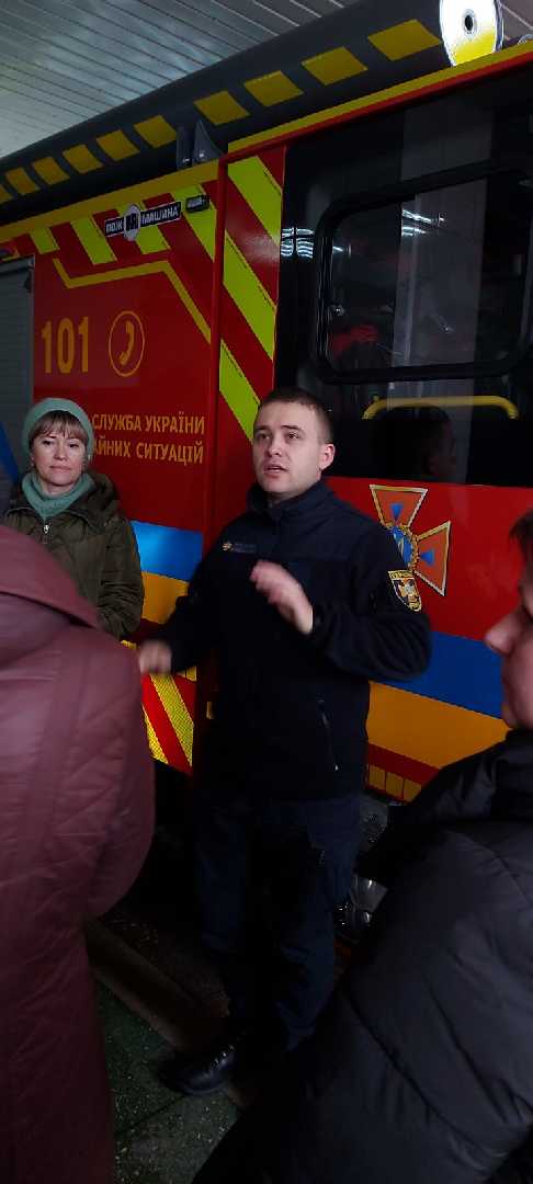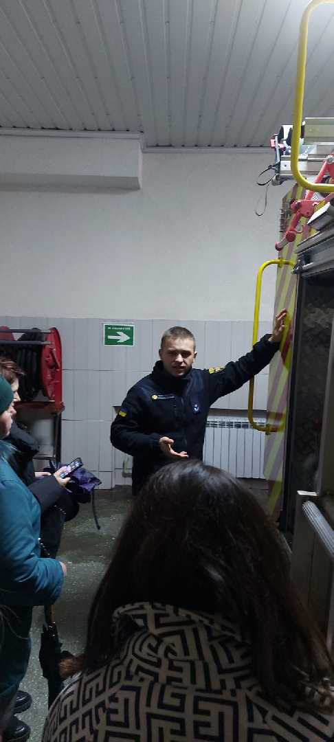 Ярослав Бартман, рятувальник 33-ої Державної пожежно-рятувальної частини міста Червонограда, провів екскурсію. Освітянам продемонстрували техніку та обладнання, яким користуються рятувальники під час виїзду на надзвичайні ситуації. Розповіли про необхідність дотримання вимог пожежної безпеки у закладах освіти та в побуті, ознайомили з порядком використання вогнегасника, про небезпеку пожеж і причини їх виникнення, а також нагадали, що таке вибухонебезпечні предмети та яку небезпеку вони несуть.