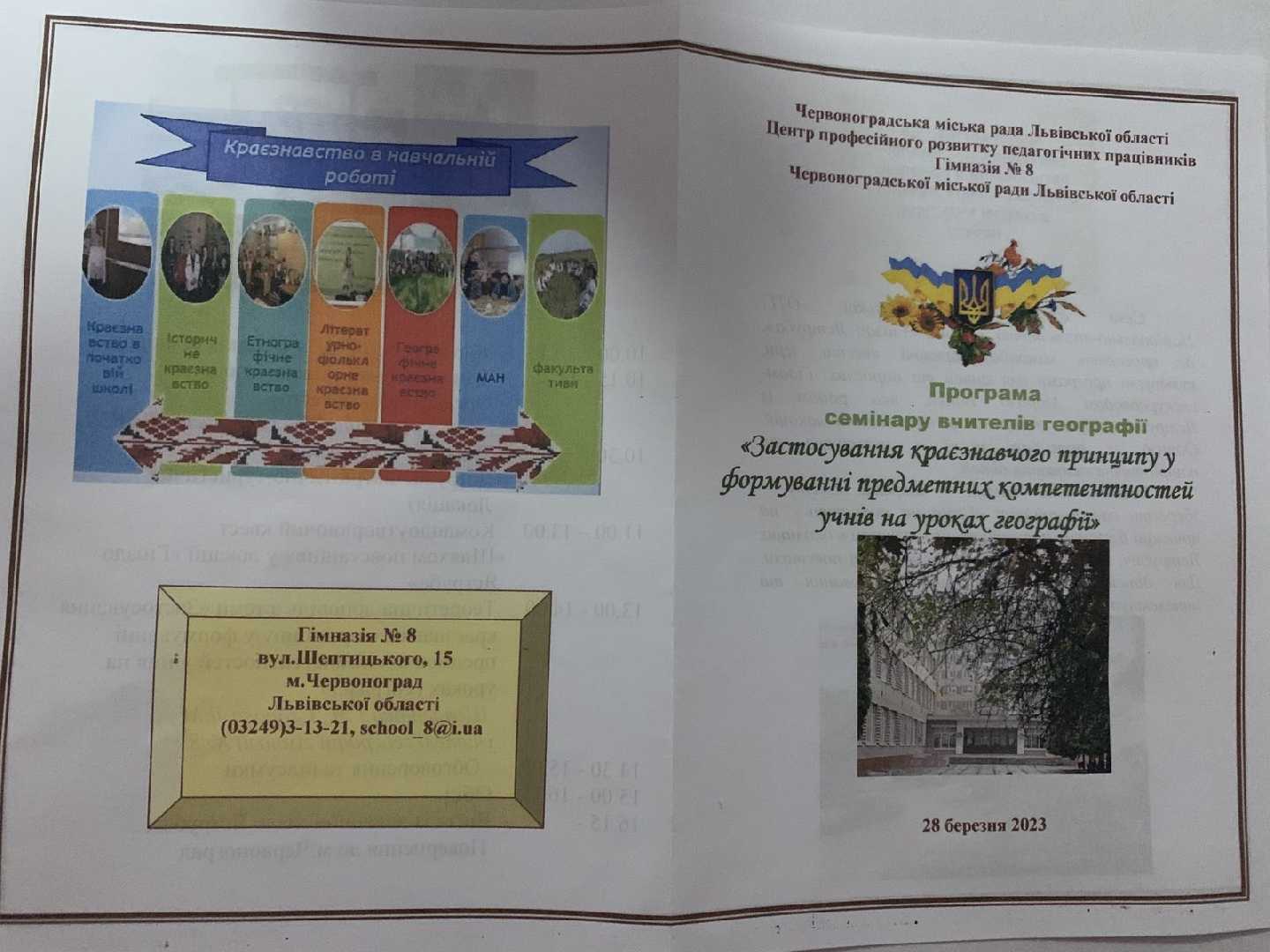 28 березня 2023 року відбувся семінар вчителів географії на тему "Використання краєзнавчого матеріалу в формуванні знань про свій край",який організували педагоги Гімназії 8 (Шалагінова Галина Волдимирівна, Джурак Ростислав Васильович, Єгорова Лариса Михайлівна).
