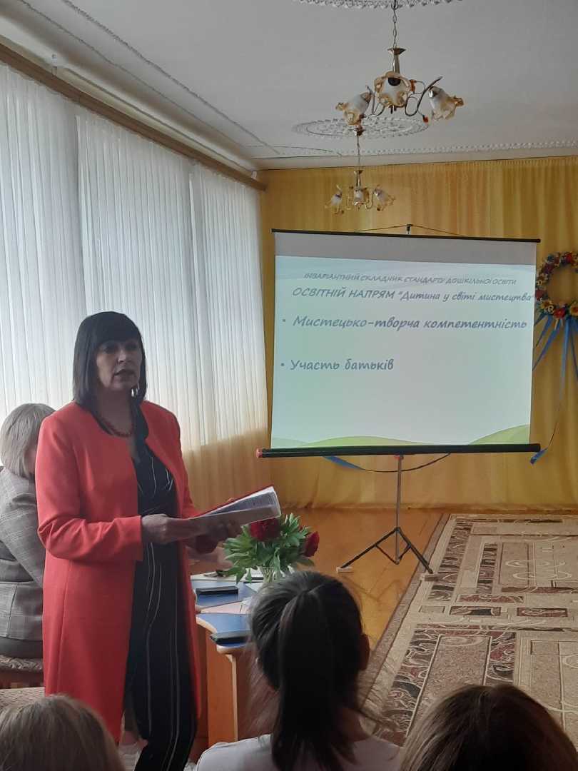 Галина ЗАКУС, консультант ЦПРПП надала інформацію щодо реалізації освітніх напрямків «Особистість дитини», «Дитина у світі мистецтва» за Базовим компонентом дошкільної освіти та наголосила роботу ЗДО саме на емоційно-ціннісному ставленні як педагогів так і дошкільників.