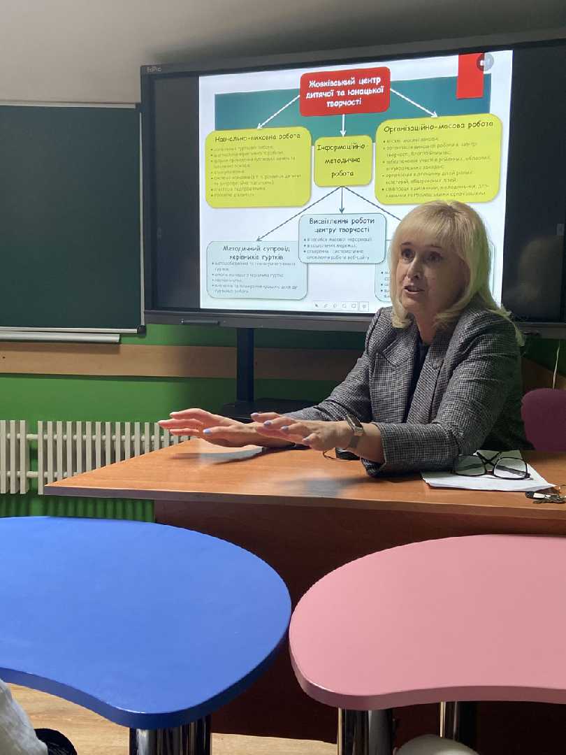 Ольга Пляцко, консультант ЦПРПП Червоноградської міської ради, зацікавила колег власним досвідом співпраці та підтримки позашкільників у сфері професійного зростання.