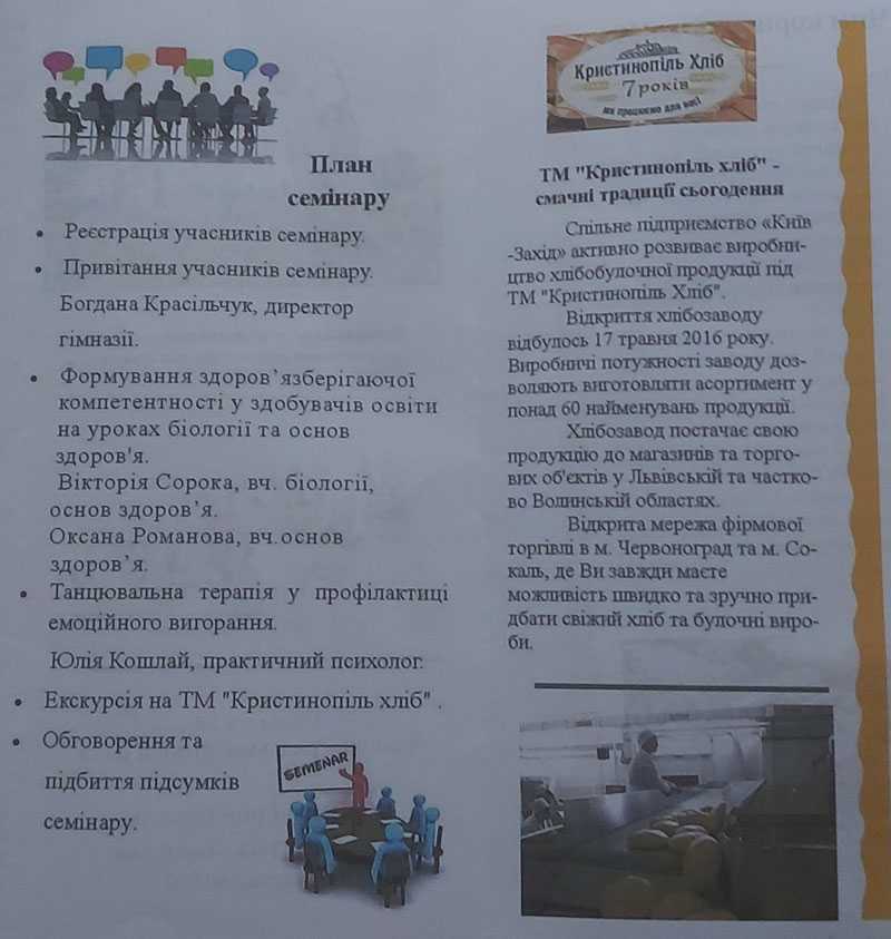 В рамках семінару відбулась екскурсія на ТМ «Кристинопіль Хліб», де ознайомились з технологією виробництва хлібо-булочних виробів.