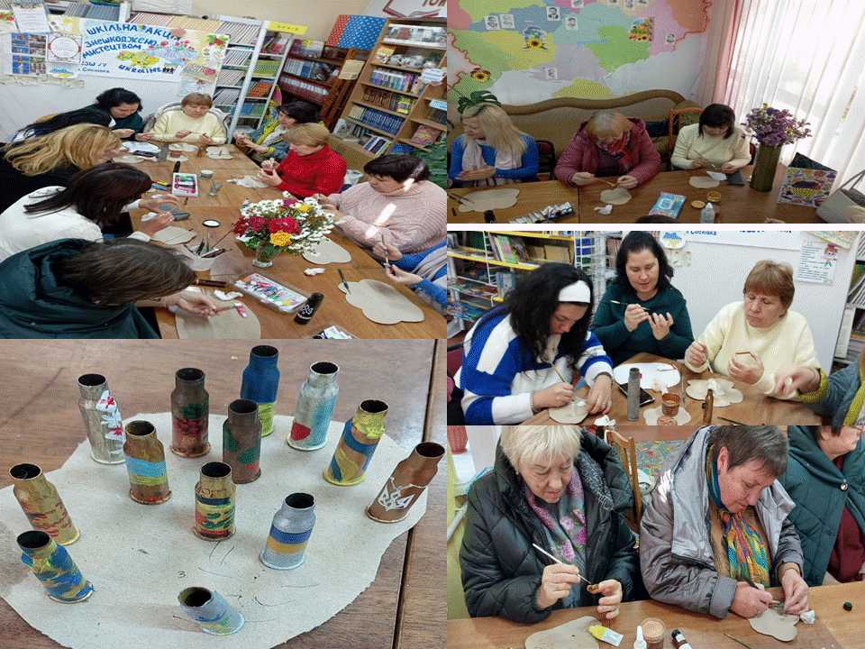 Анна Малицька, завідувачка бібліотеки СЗШ № 7, ознайомила присутніх з роботою шкільної бібліотеки та провела майстер-клас з розпису гільз переданих нашими воїнами з передової за шкільним проєктом «Знешкоджено мистецтвом». У майстерці з гільзами допомагала учениця закладу Анічка.