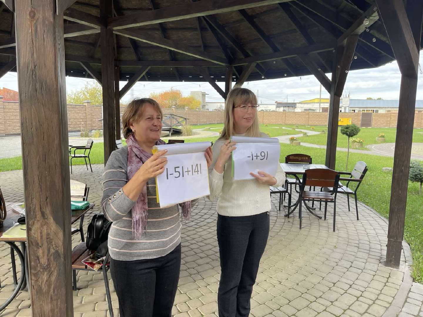 Педагоги, мандруючи Радехівщиною не лише ознайомилися з красою природи та наповнилися народною культурою, але й брали активну участь у математиматичних іграх: "Нерівності", "Подільність чисел", "Танграм", "Кома", "Математичне лото".