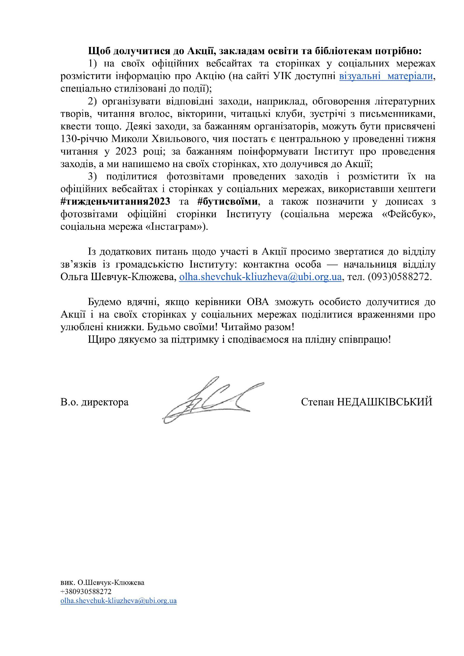 Щодо участі в акції «Національний тиждень читання»