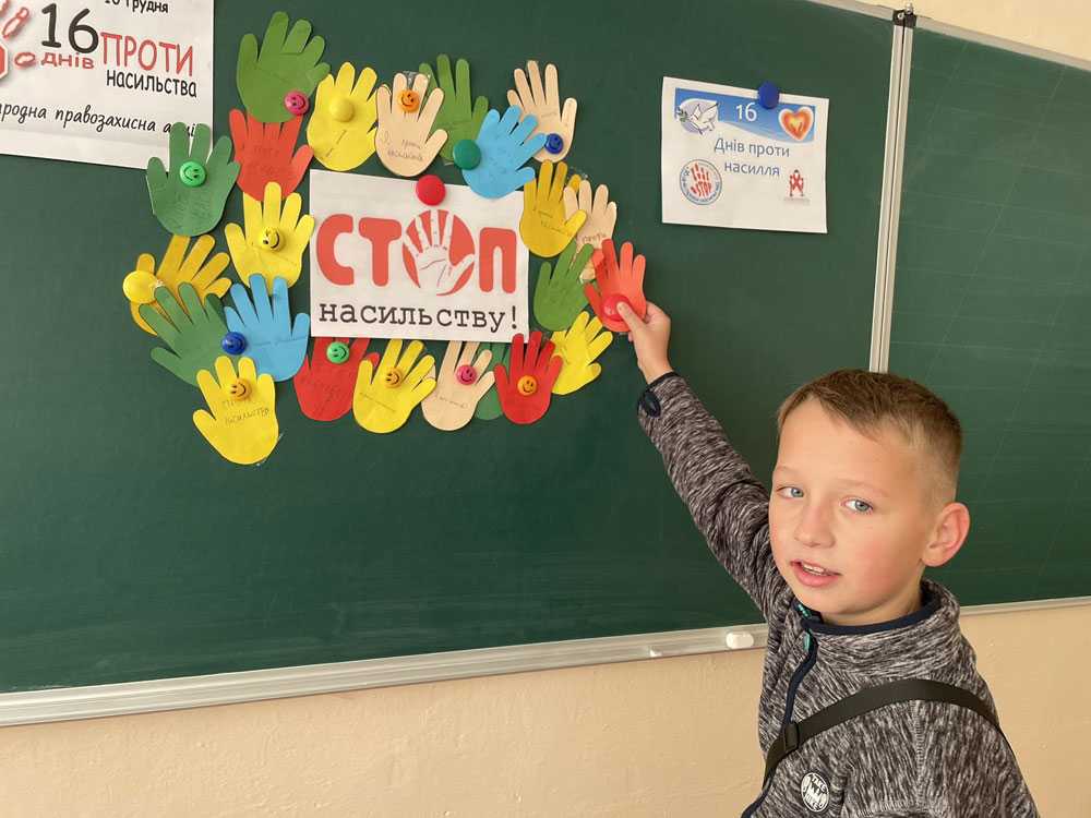 7 грудня у 6-В класі Гімназії №12 класний керівник Мельник І.М. та інспектор сектору ювенальної превенції Максим Орисюк провели правовиховний захід "Насильство не має виправдання! Починай діяти!". Разом із працівником поліції школярі дискутували про види та форми насильства, обговорювали конкретні ситуації, пригадали телефони гарячої лінії. Разом із Іриною Мар'янівною шестикласники створювали правила недискримінаційного поводження в класі та школі, а на завершення своїми символічними долоньками підтримали тих, хто потребує захисту від насильства.