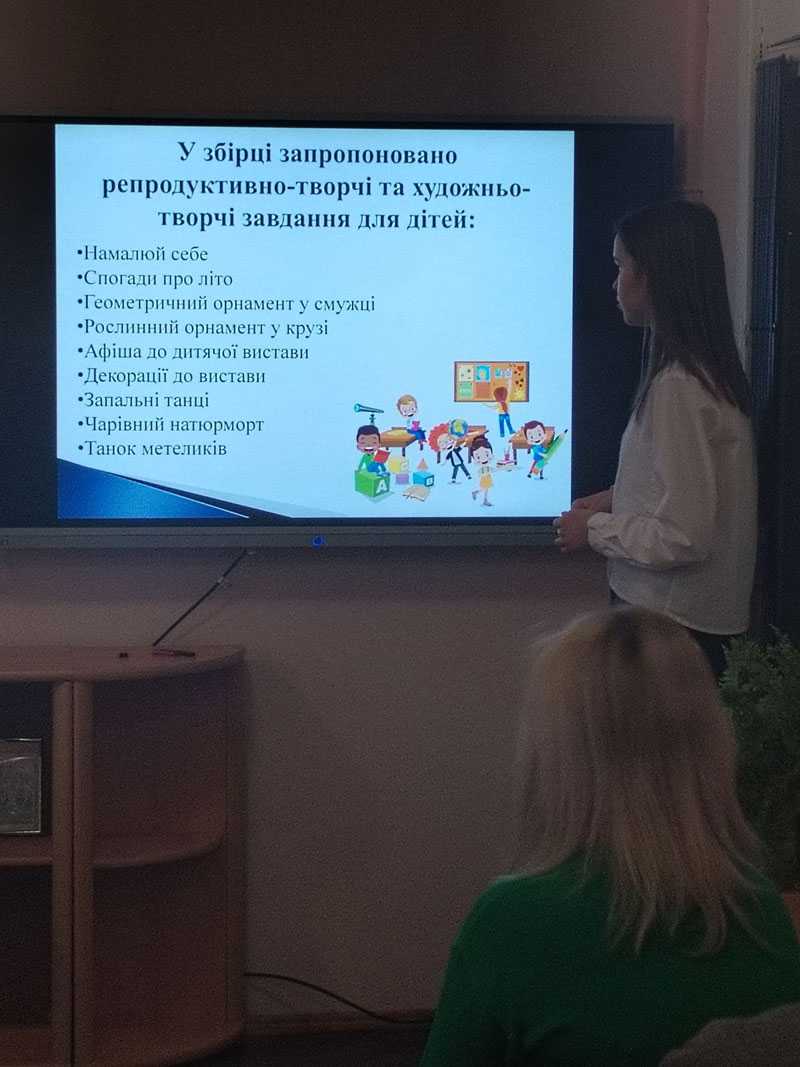 Катерина АХТЯНКІНА, вихователь ГПД, поділилась своїм досвідом роботи, та представила збірку «За лаштунками прекрасного». Застосування різних форм мистецтва, спрямованих на виявлення та розвиток талантів, робить заняття цікавими та стимулюючими для всіх учнів.