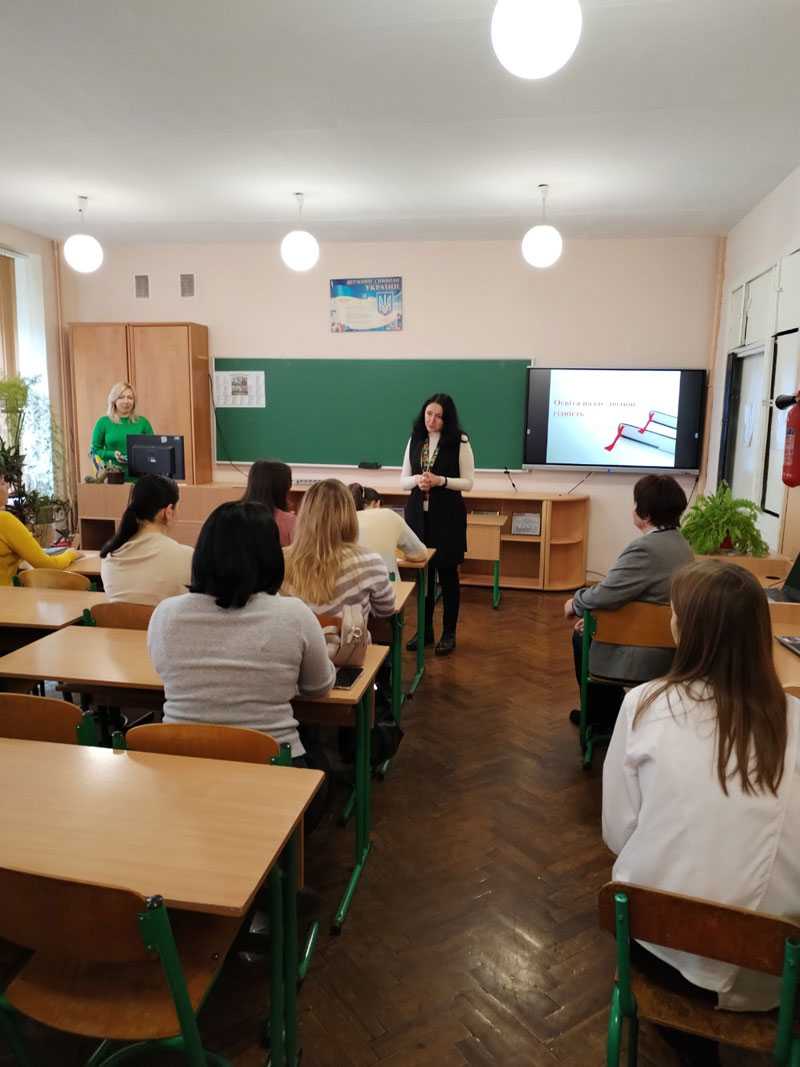 З вітальним словом виступила директор Гімназії 12, Уляна СВЙОНТЕК, яка представила презентацію про історію та сьогодення навчального закладу.
