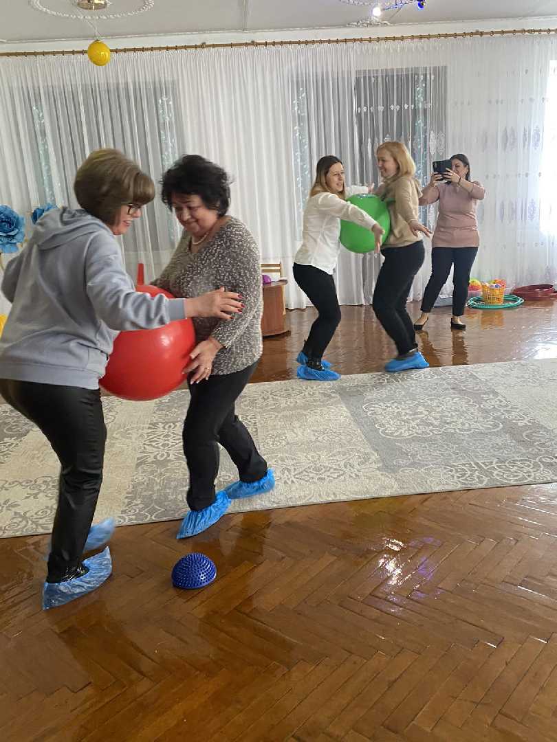 Наталія БАРАНЮК, інструктор з фізичної культури ЗДО № 18 презентувала свій досвід роботи з дошкільниками закладу під час занять з фізкультури та провела з учасниками семінару руханки, інтерактивні і рухливі ігри, вікторини: педагоги закладів дошкілля побували у ролі дітей.