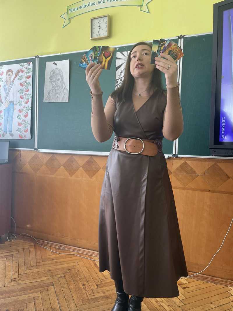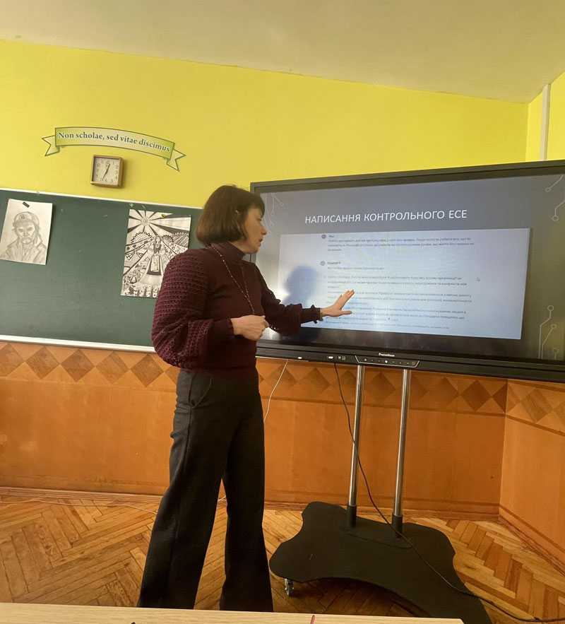 Своїм досвідом використання нейромереж на уроках літератури поділилися вчителі Червоноградського ліцею Людмила Мартинович та Оксана Папаєвич. Цікаві форми роботи продемонструвала Людмила Мартинович: робочі аркуші, генерування зовнішності літературних героїв, створення дидактичних матеріалів, зокрема кроссенсів. Оксана Папаєвич розповіла про можливості генерування текстів у підготовці ліцеїстів до написання творчих робіт, створення есе типу роздум. Вона наголосила, що навчає старшокласників критично ставитися до згенерованої інформації, аналізувати аргументи, запропоновані ШІ до певної тези, добирати приклади для їхньої ілюстрації. Підкреслила, як правильно ставити питання і формулювати завдання для ШІ.