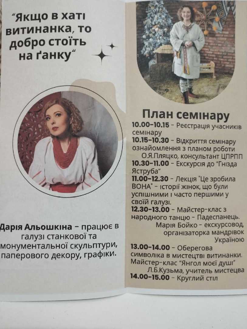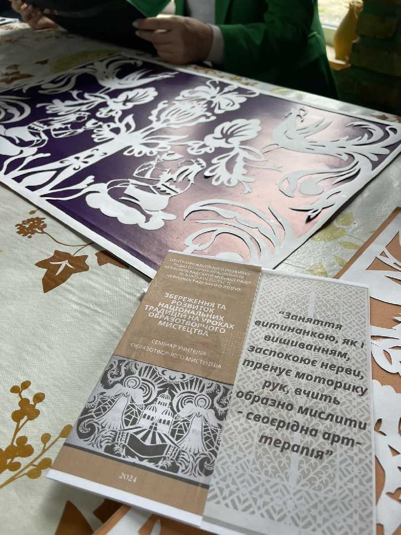 Цікавою та пізнавальною була доповідь Лесі Богданівни «Оберегова символіка в мистецтві витинанки», в якій доповідачка відмітила важливість впровадження національних традицій в навчальний процес та використання їх на уроках образотворчого мистецтва. Майстер-клас «Янгол моєї душі» став прикладом перетворення уроку на захоплюючий шлях в дослідження нашої культурної спадщини.