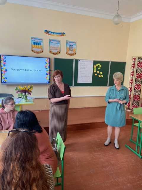 Iryna Synia, завідувачка, Ольга Якимик, методистка кабінету «Центр внутрішнього забезпечення якості освіти» Львівський обласний інститут післядипломної педагогічної освіти поділились з присутніми практичними навичками у сфері медіаграмотності. Педагоги спробували себе в ролі експертів у різних галузях науки, взяли участь у «Ток шоу у формі діалогу».