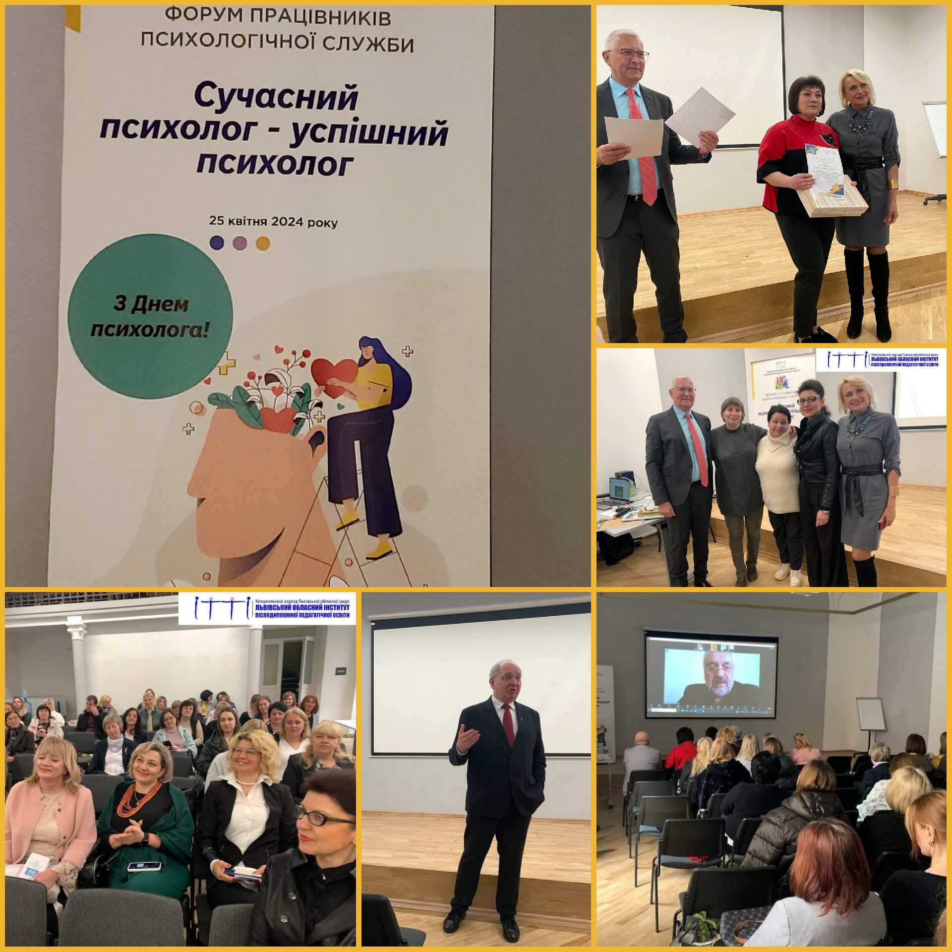 25 квітня 2024 року відбувся форум працівників психологічної служби Львівської області «Сучасний психолог – успішний психолог», присвячений Всеукраїнському дню психолога.